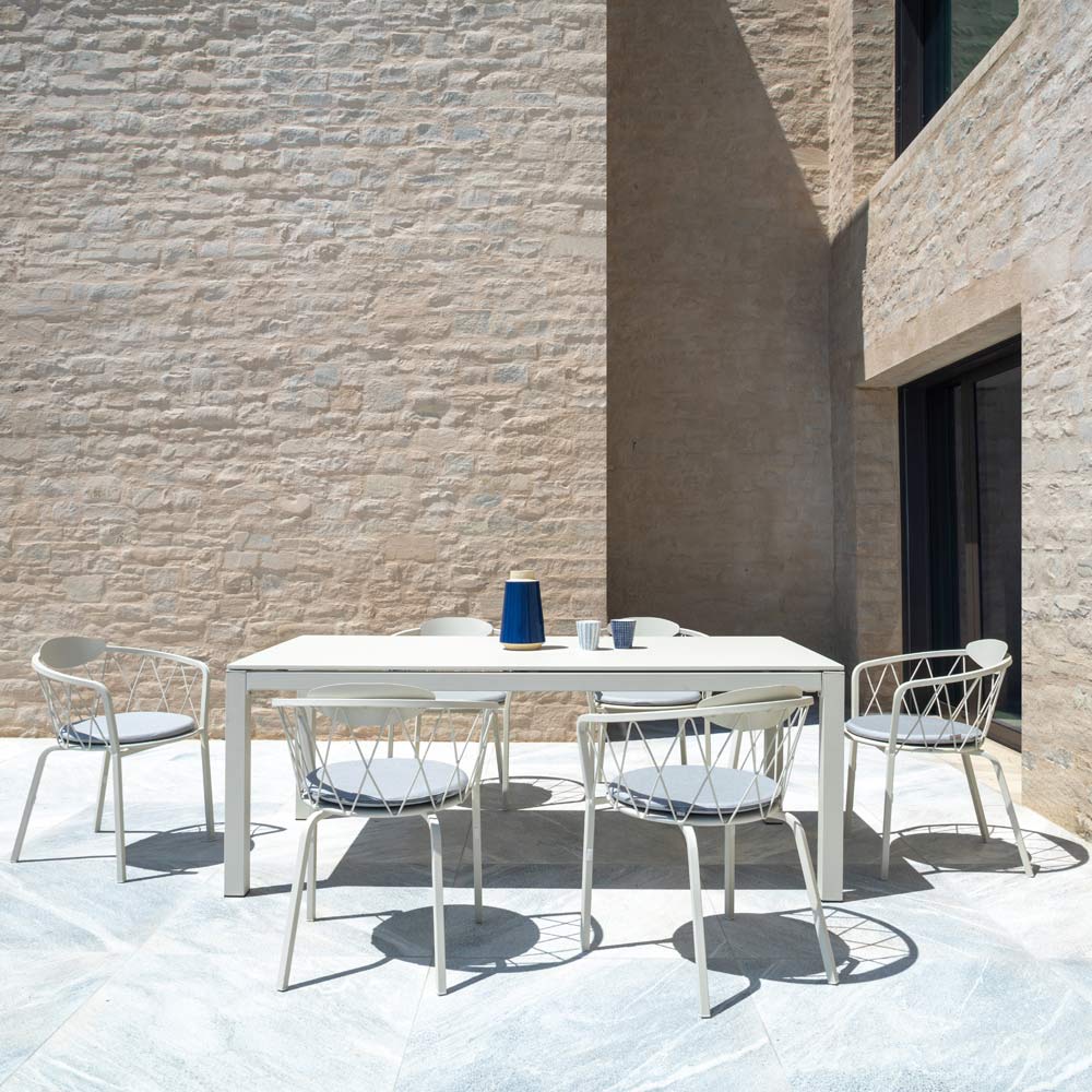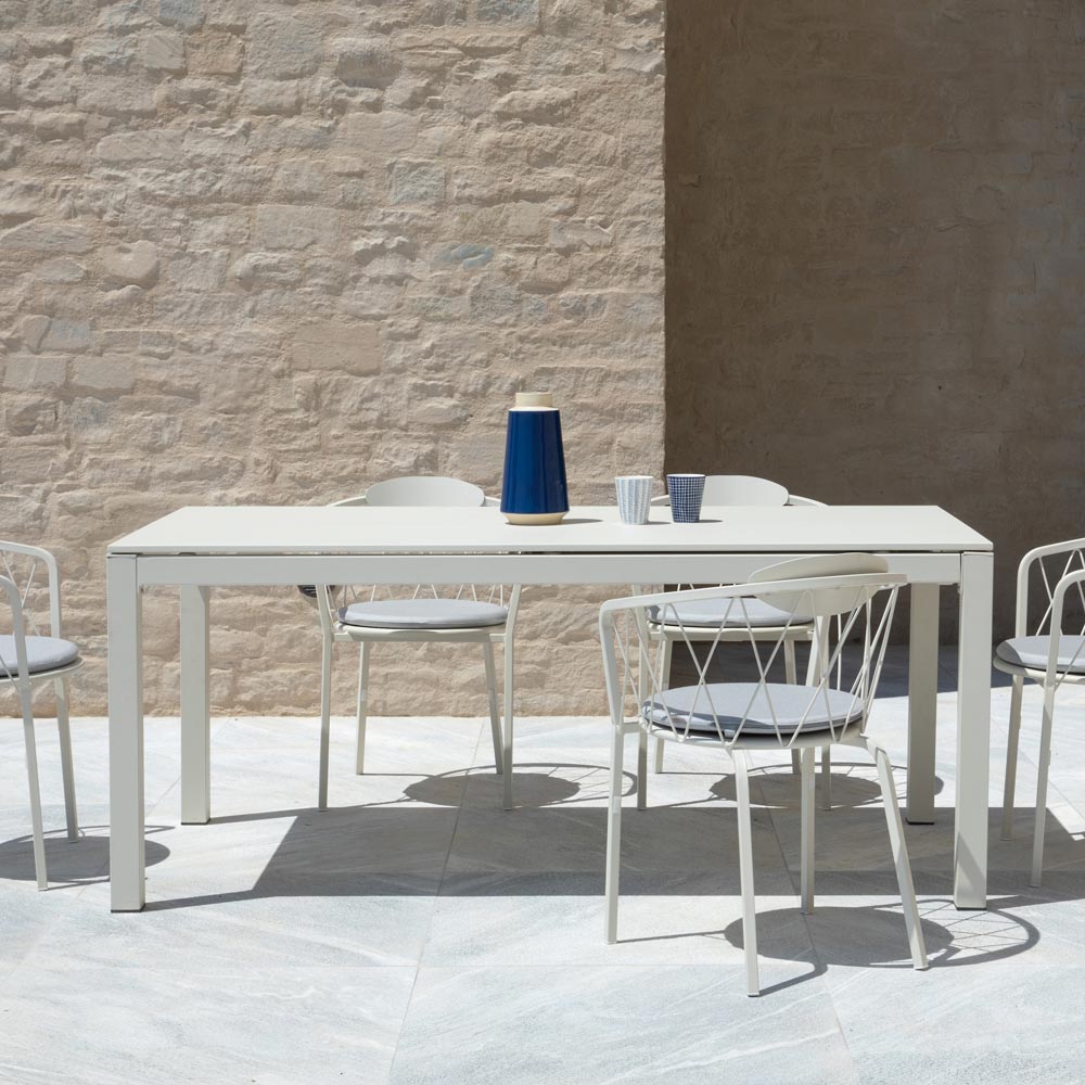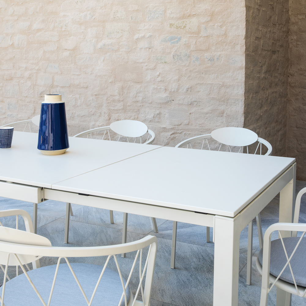 Extendable outdoor dining table in metal Made in Italy.