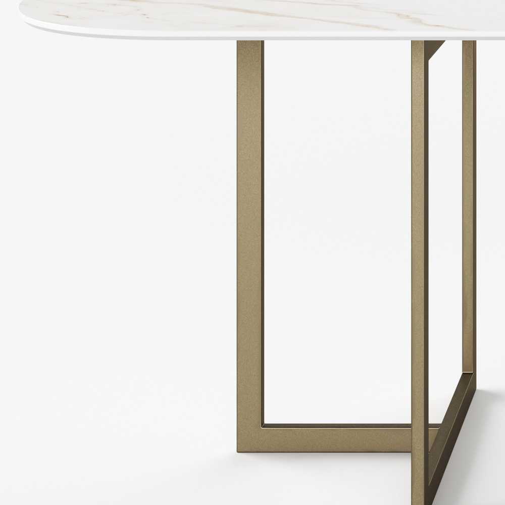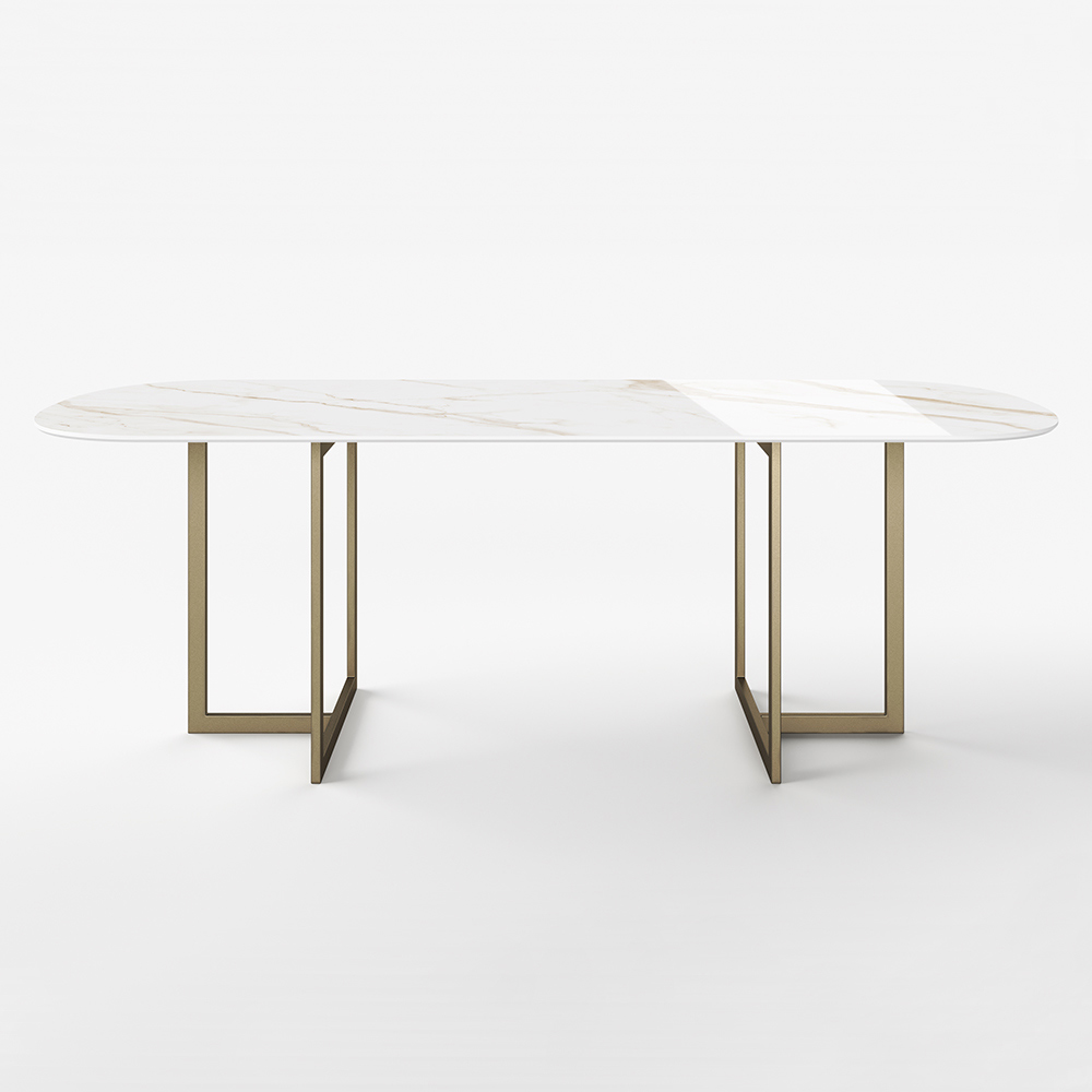 Dining table in porcelain stoneware with marble and metal effect Made in Italy.