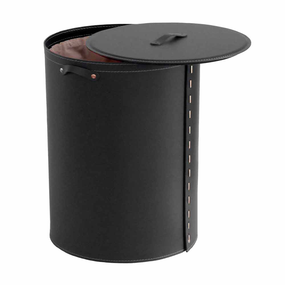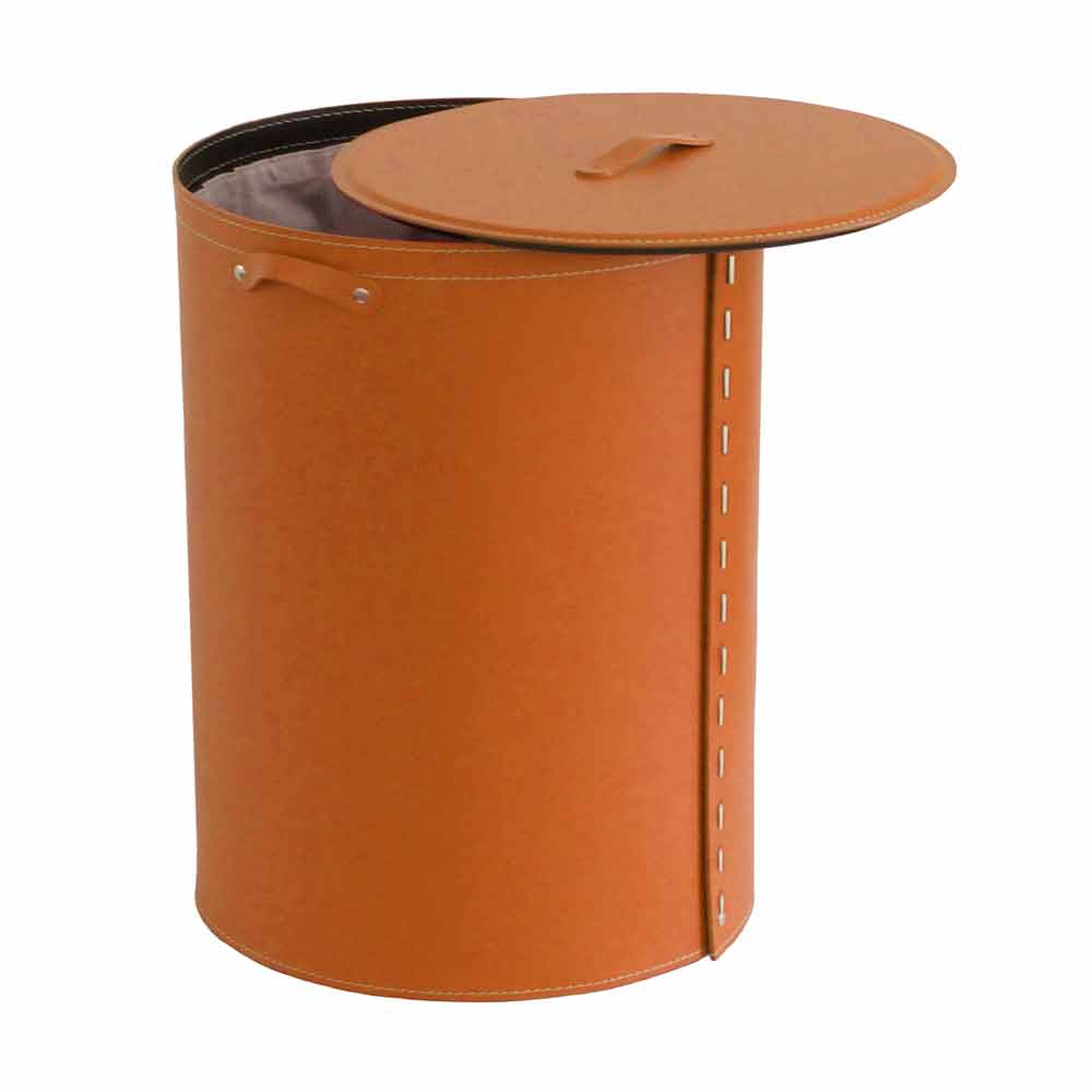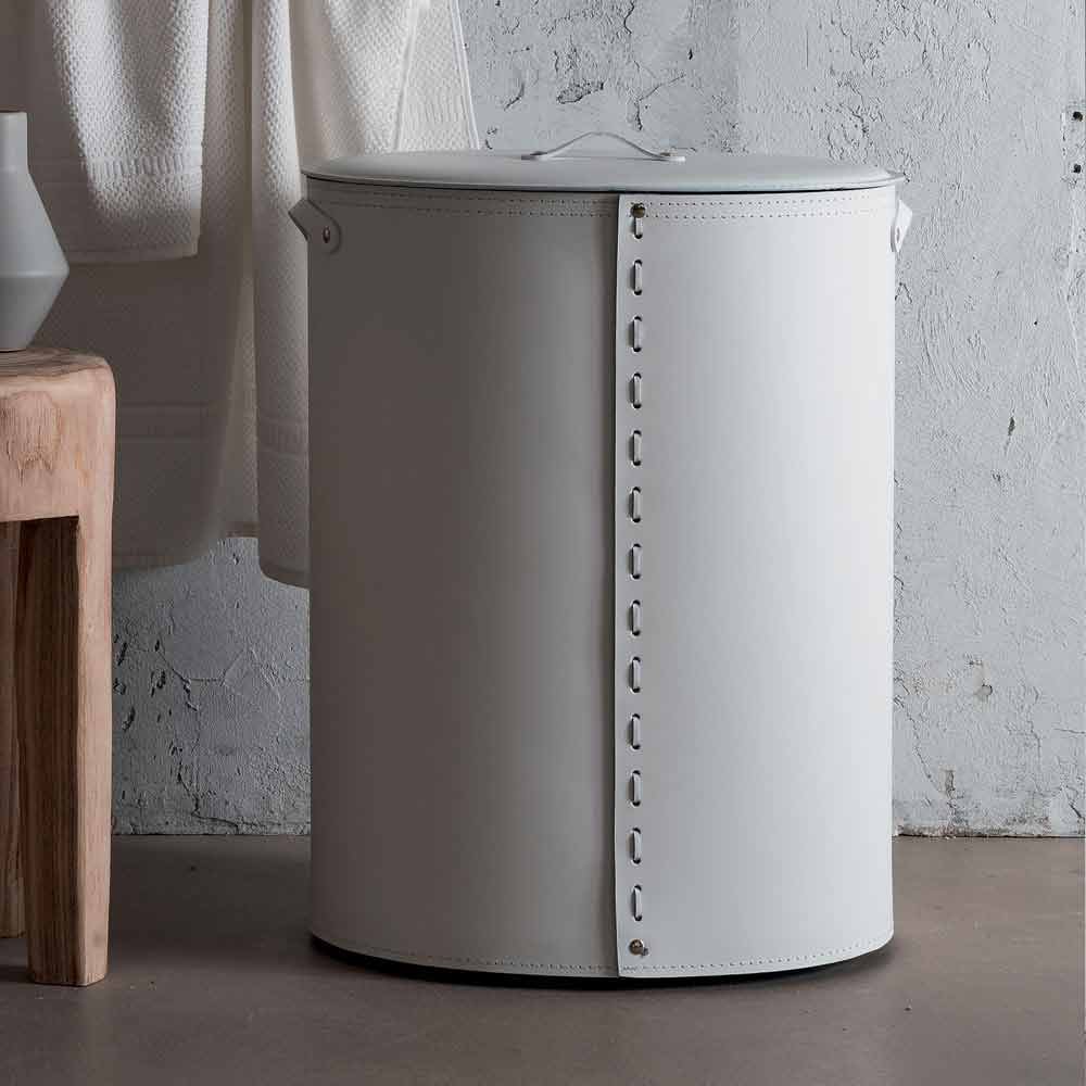 Oval laundry basket in Riky regenerated leather made in Italy Riky is a unique oval linen basket, handmade by Italian Master Craftsmen. Riky is made entirely of regenerated leather, complete with a removable inner bag in pure cotton, enriched with rubber feet and a coated multi-layer wood base. Equipped with small and meticulous details Riky presents a simple and elegant design. Riky is available in different colors, choose the finish you want most!