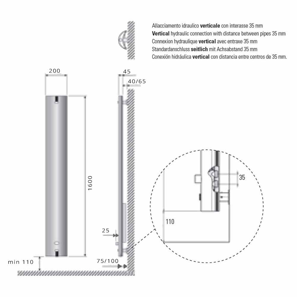 NB: The valves and the holder are excluded, to receive them write to us in the "Request Information" form. Available on request also the coat hanger in satin stainless steel, not included in the price.