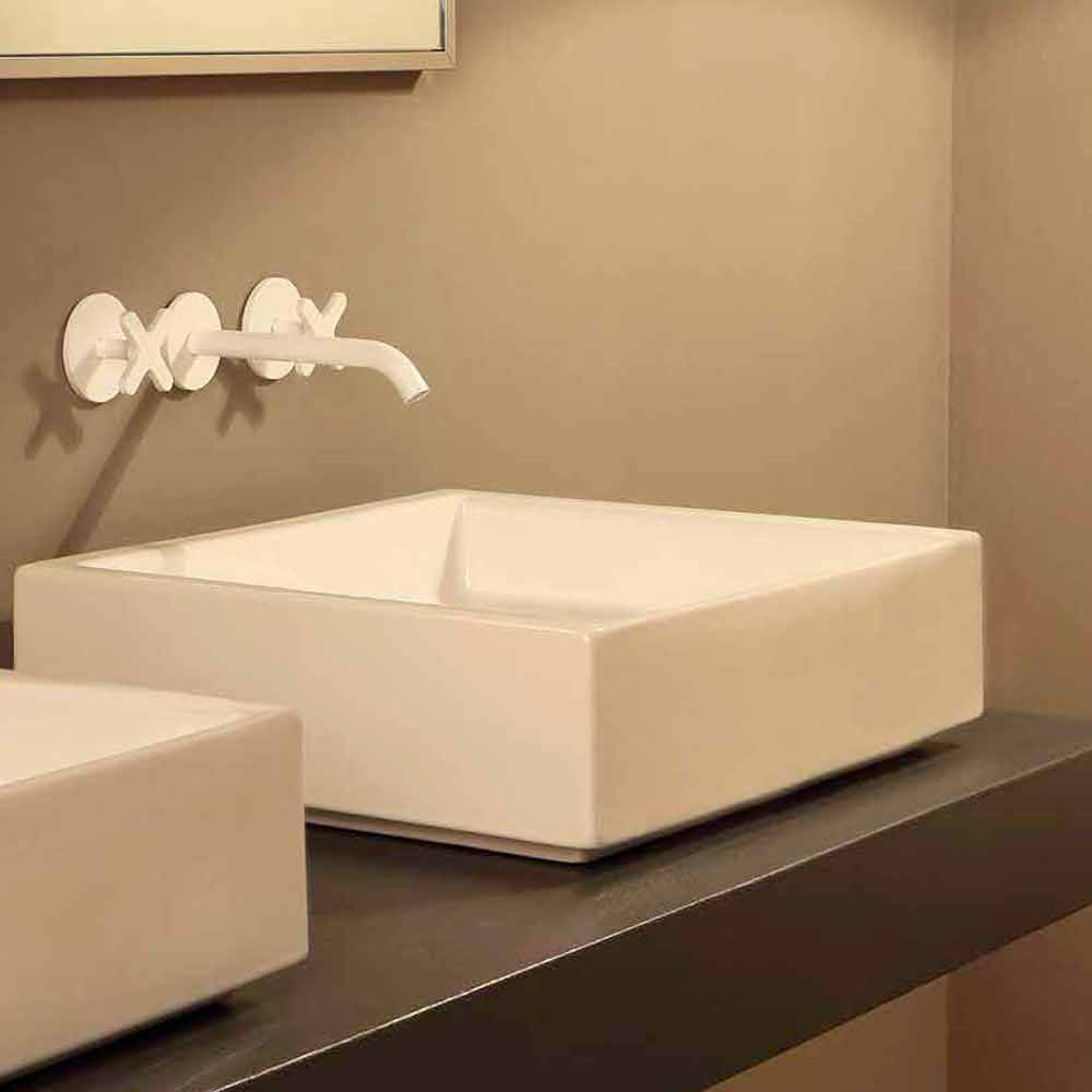 Design rectangular ceramic washbasin made in Italy Dalia Modern rectangular design washbasin inspired by the old public fountains with continuous water flow.
