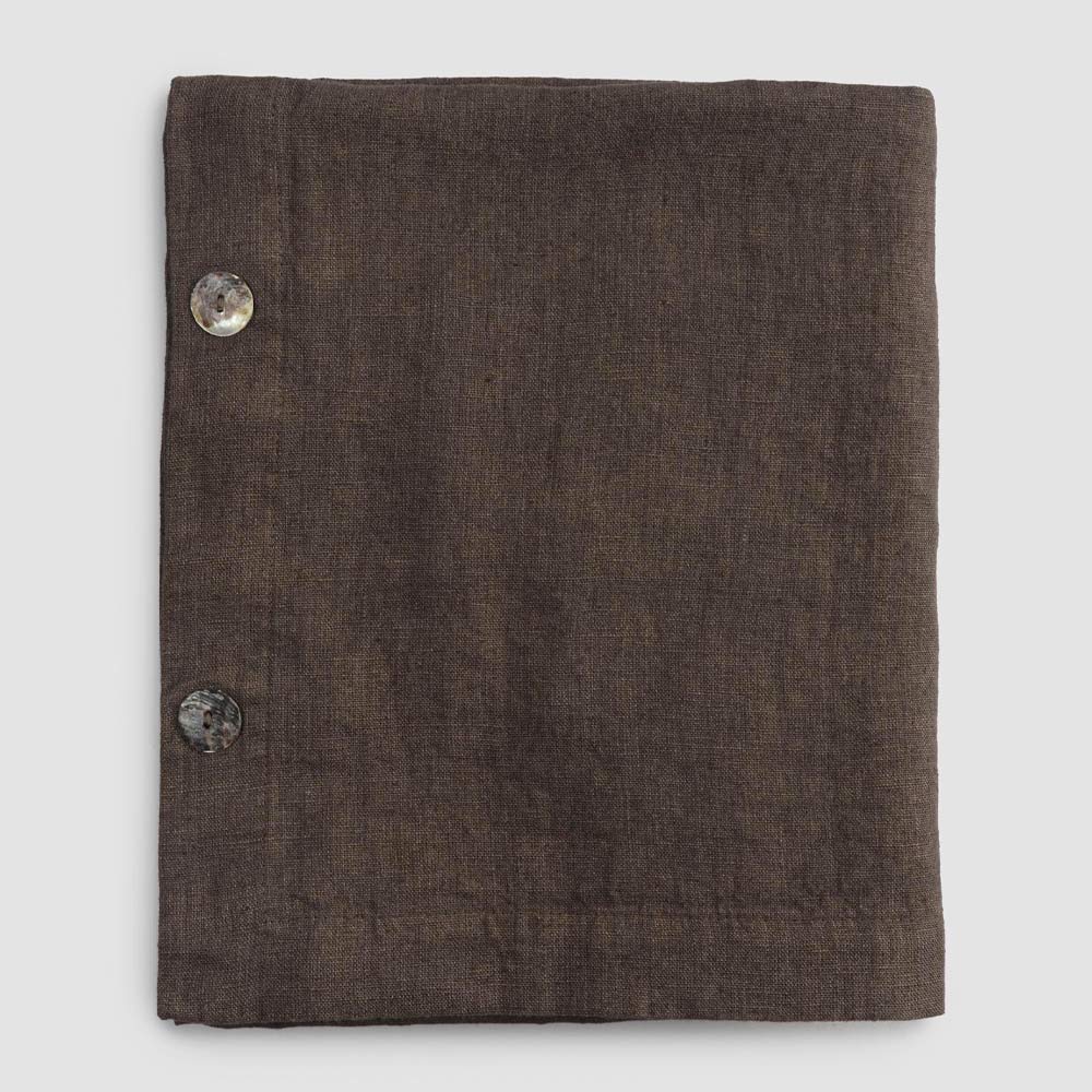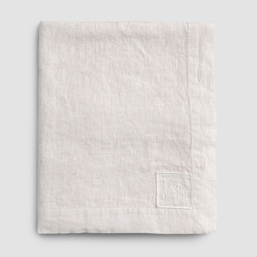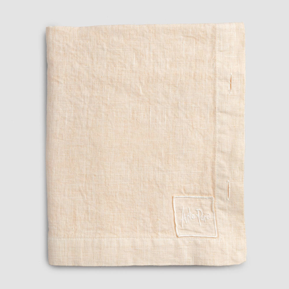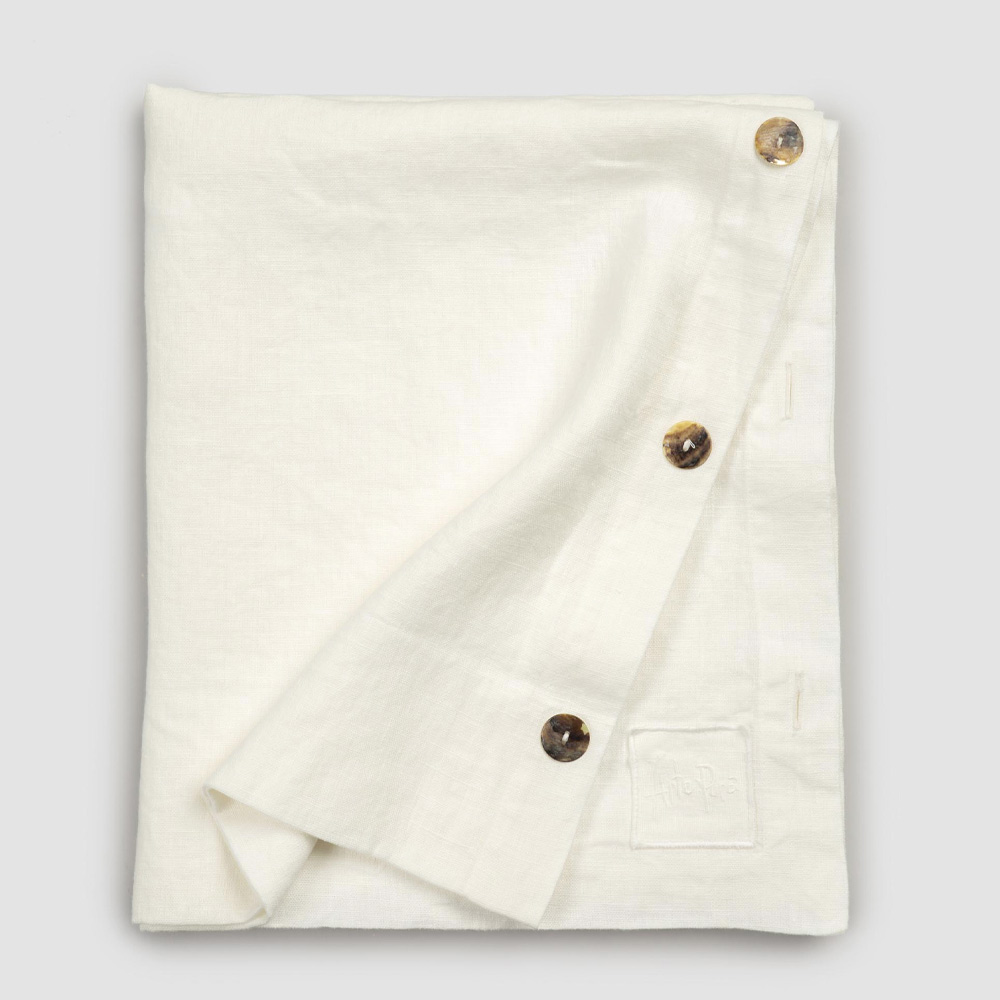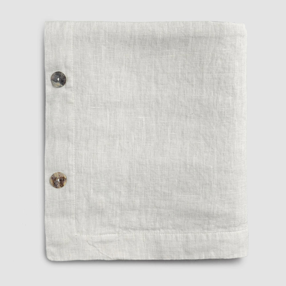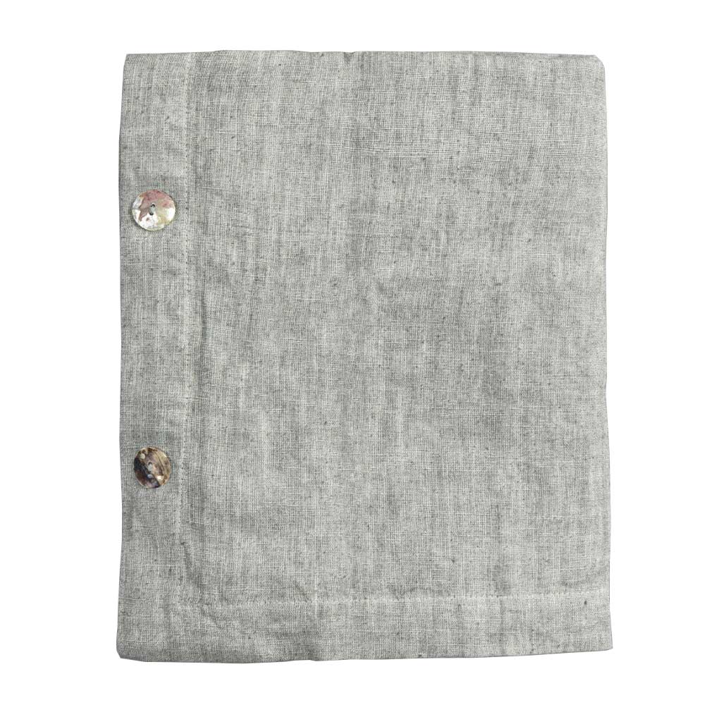Modular tablecloth in colored linen with mother-of-pearl buttons, handmade quality made in Italy.