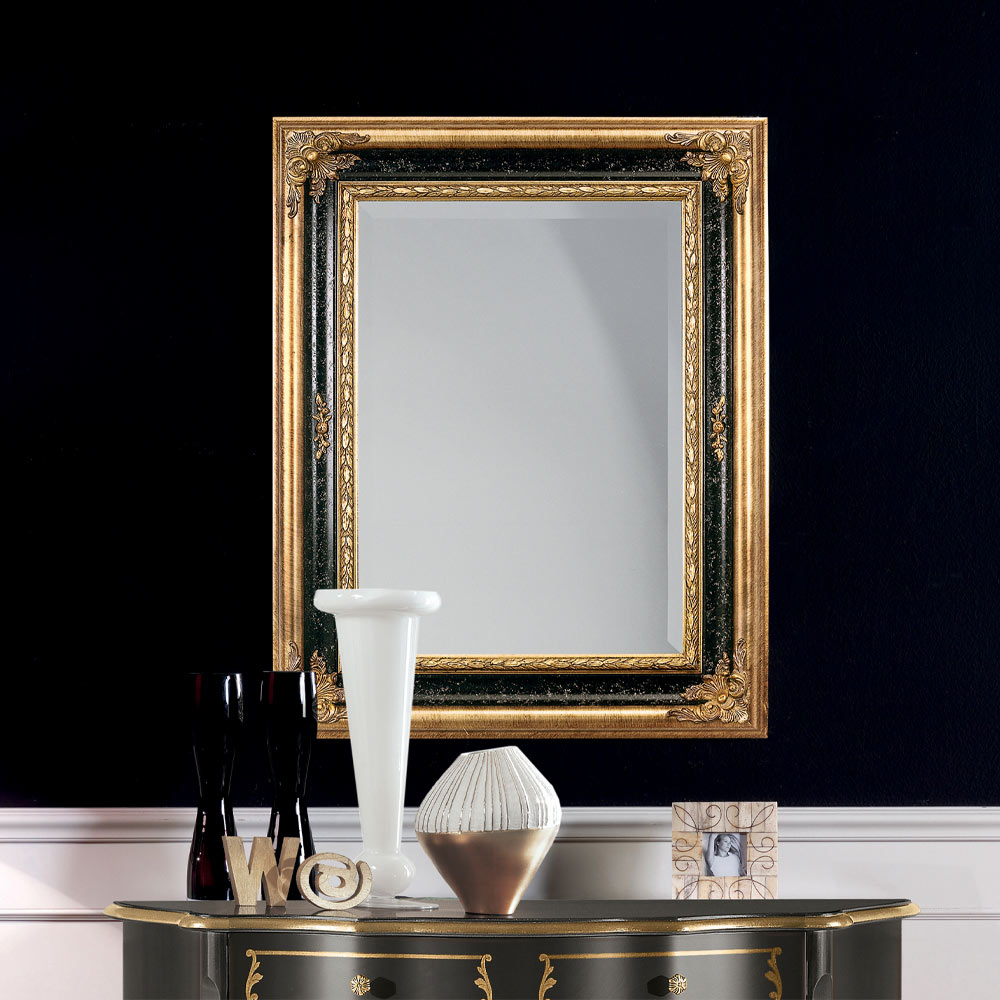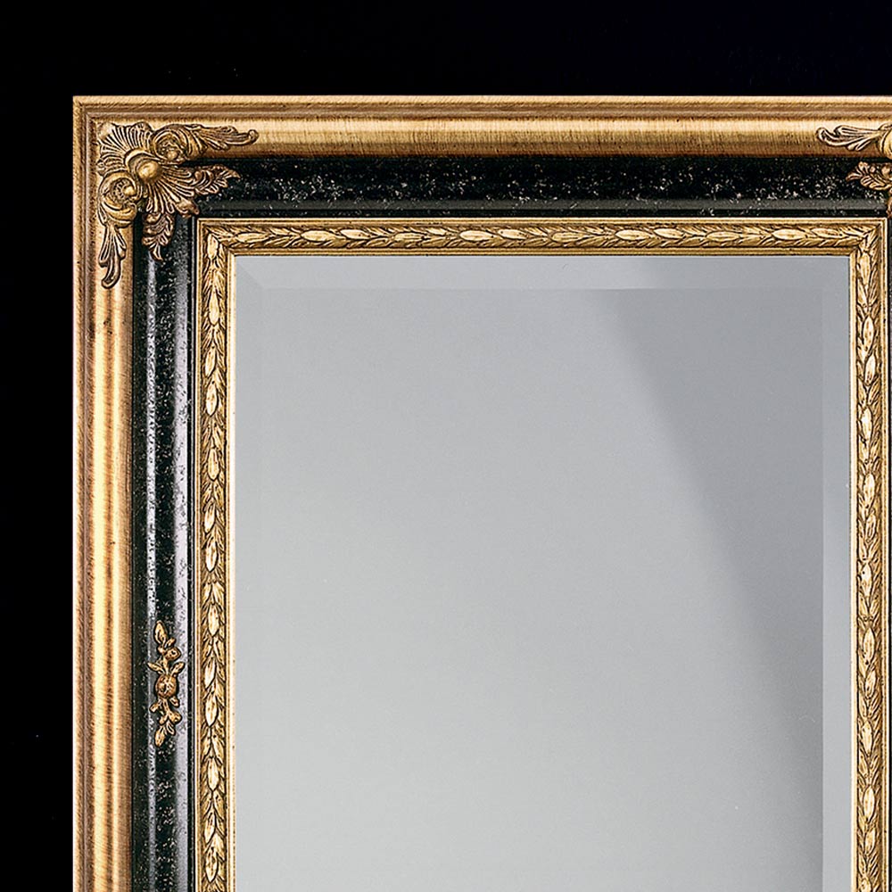 Elegant rectangular mirror with wooden frame decorated with gold leaf and black lacquer. Ā Thanks to its classic style , this mirror is ideal for giving any room an elegant and luxurious touch. A unique and refined complement, completely made in Italy by skilled master craftsmen , masters of art who finish each complement with wisdom and taste for elegance. The production is carried out using fine materials , and performing the workbyhand with the utmost care and professionalism that distinguishes Made in Italy products.