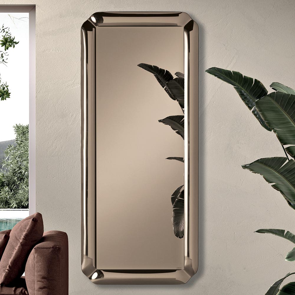 Thanks to its balance between minimalism and material details, this mirror represents an elegant solution for modern and contemporary environments, helping to amplify the light and give depth to the wall.