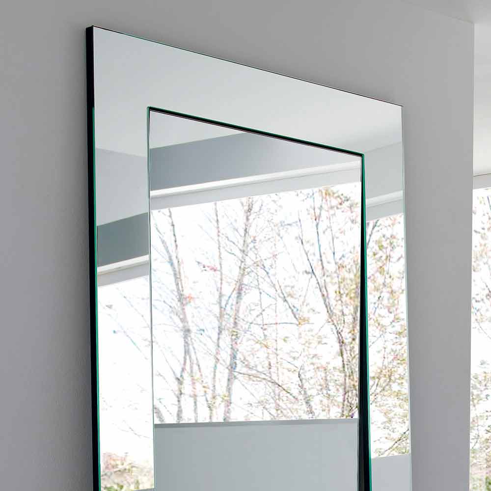 Modern design rectangular free standing mirror with inclined frame, realized in Italy by hand.