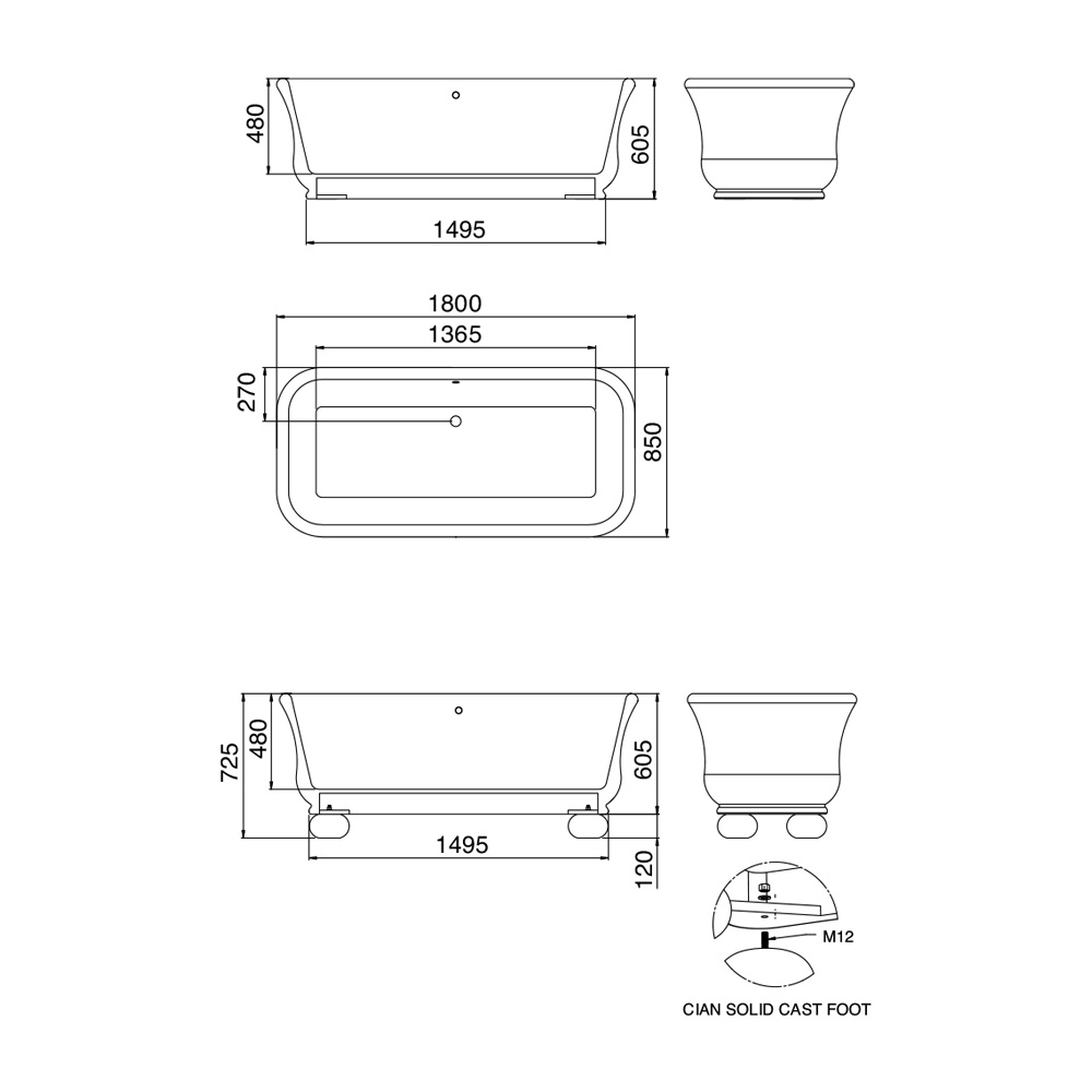 NB: The taps, the siphon and the accessories are not included in the price. If you wish to purchase them or customize your bathtub in terms of finishes and sizes, do not hesitate to contact us using the appropriate " Request Information " form.