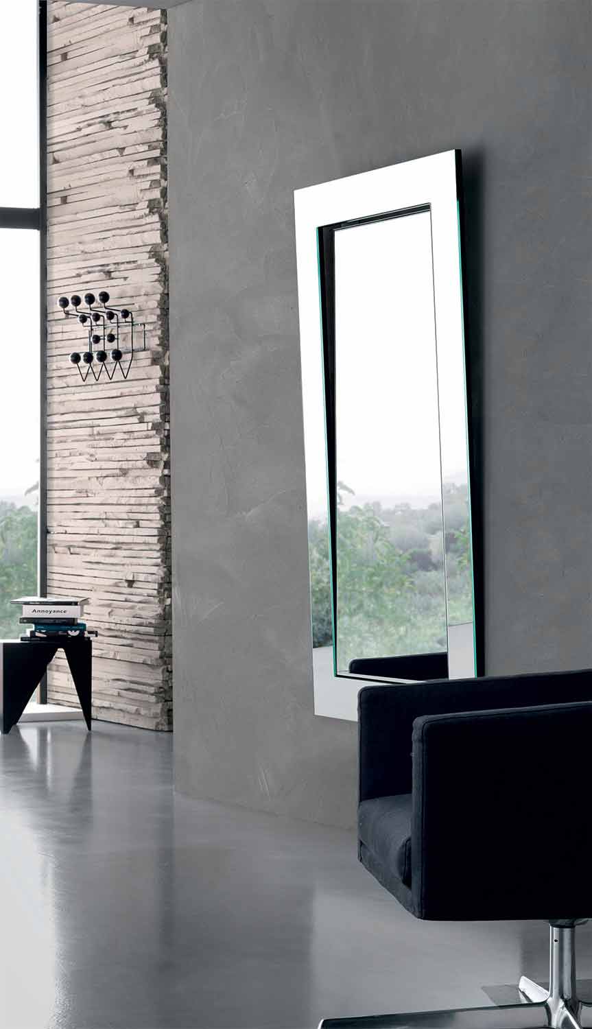 This big wall mirror is an exclusive piece of furniture, realized in Italy with high-quality materials. It comes from a unique sheet of glass with inclined frame.