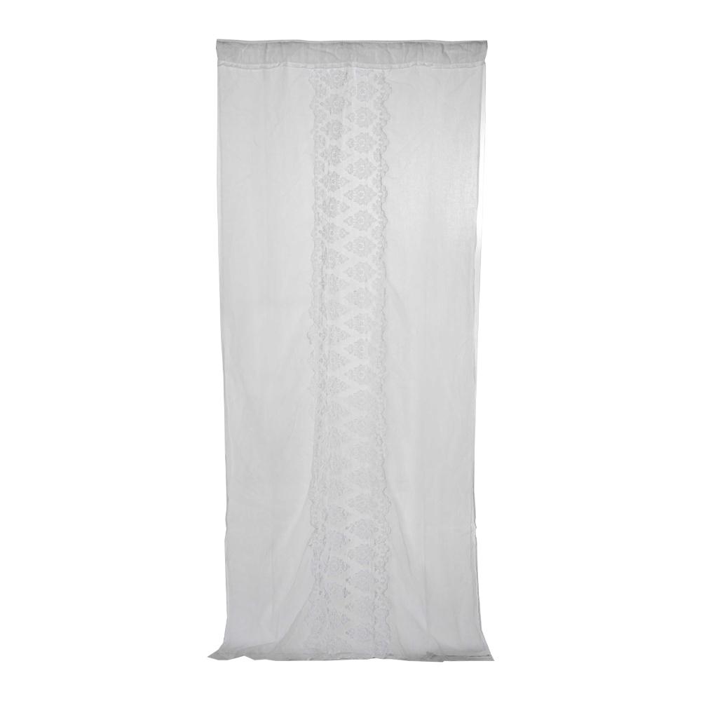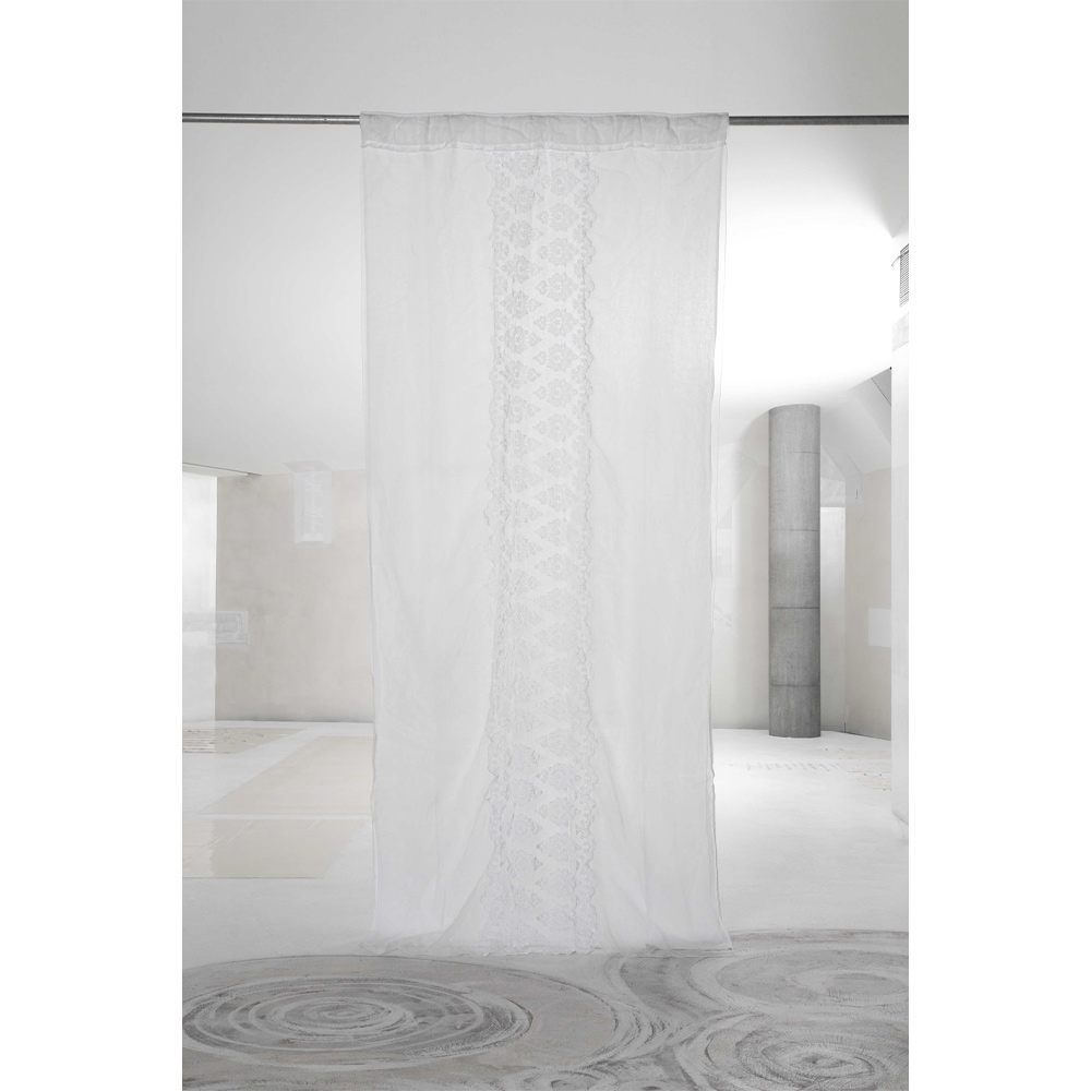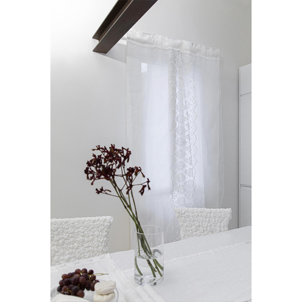 Natural linen and organza curtain with central vertical embroidery and predisposition for rod, made in Italy.