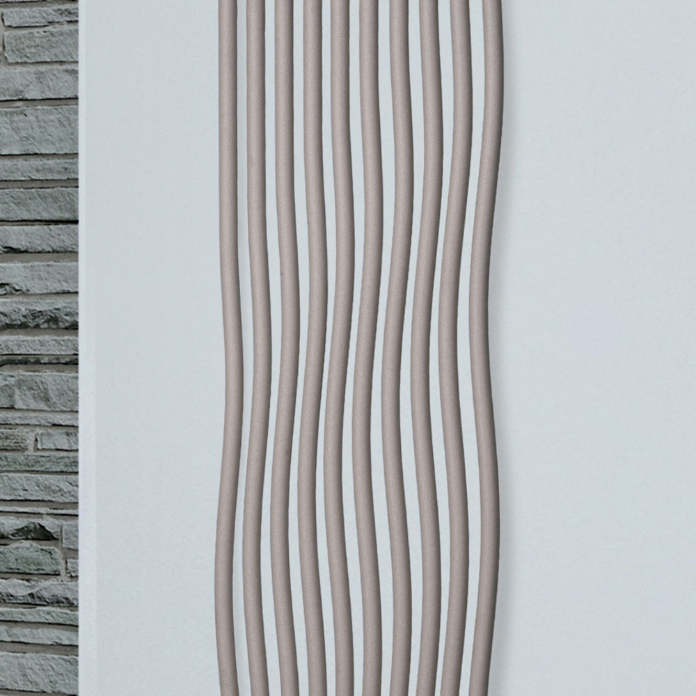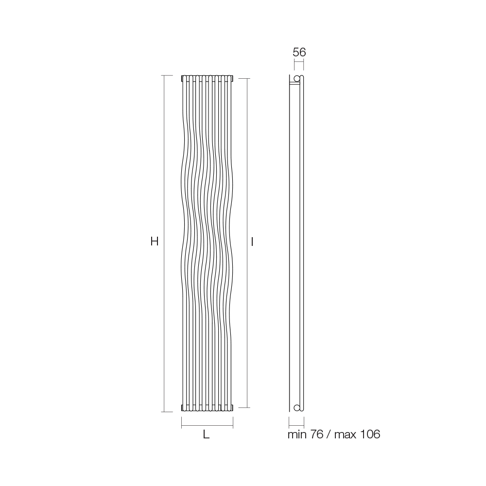 Hydraulic radiator in carbon steel with QUGS finish consisting of a series of curved vertical elements with a diameter of 2.2 cm welded onto horizontal manifolds with a diameter of 3.5 cm, entirely made in Italy with wall fixing kit, vent valve and blind cap included . Every stage of production is carried out in a factory near Treviso, just a few kilometers from Venice, where quality is the constant and constant goal. Quality is synonymous with extreme attention to detail and the selection of the most reliable materials . This is how this radiator, pure design and functionality at its finest, was born.