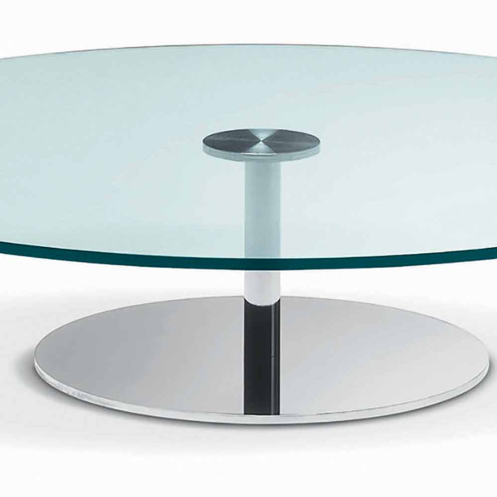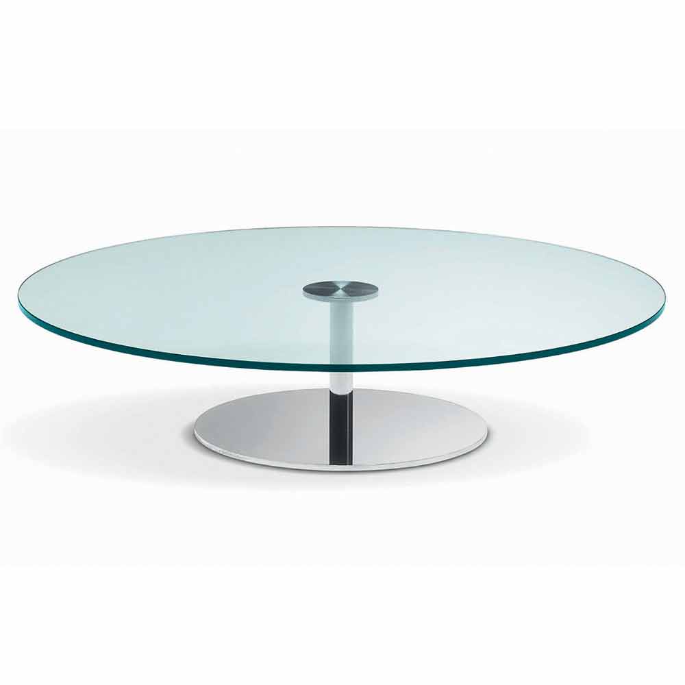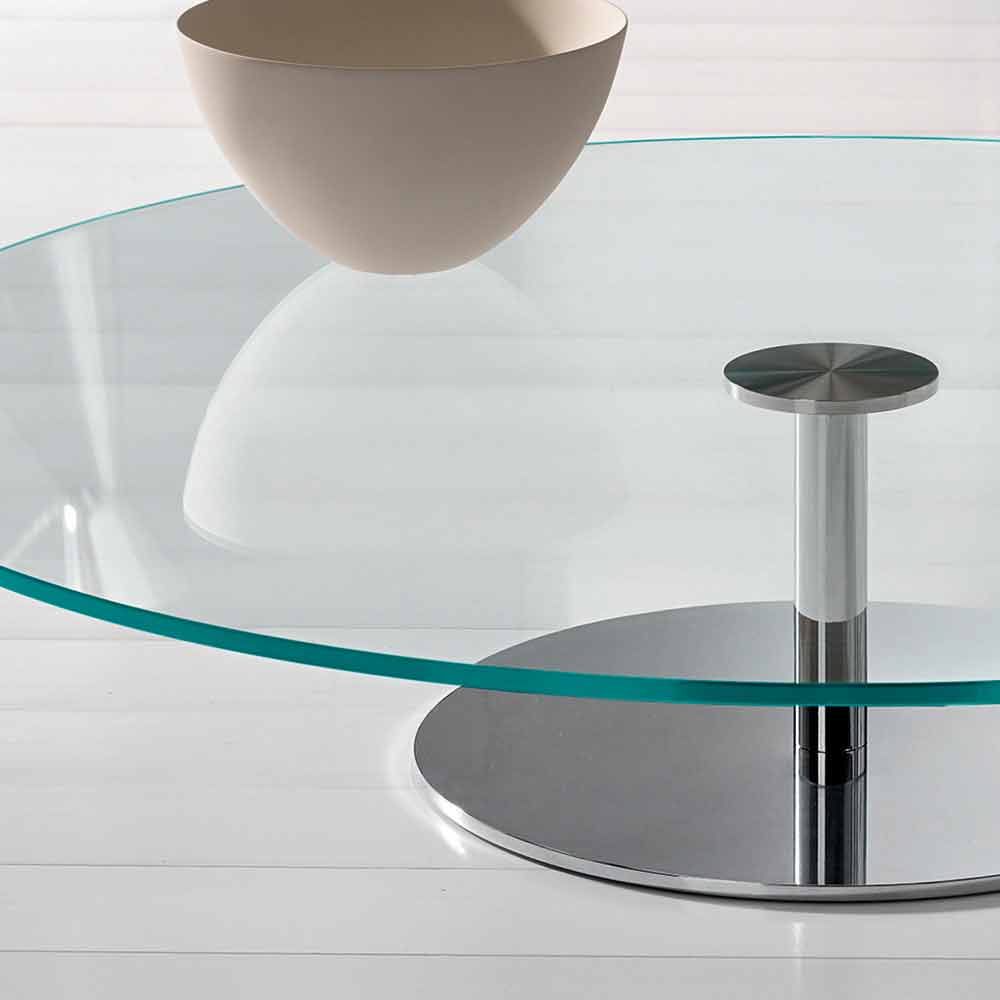 This low coffee table for the living room with a round design is characterized by the top made entirely of extra-clear glass and a metal support base in a chrome finish, which creates wonderful light and three-dimensional effects.