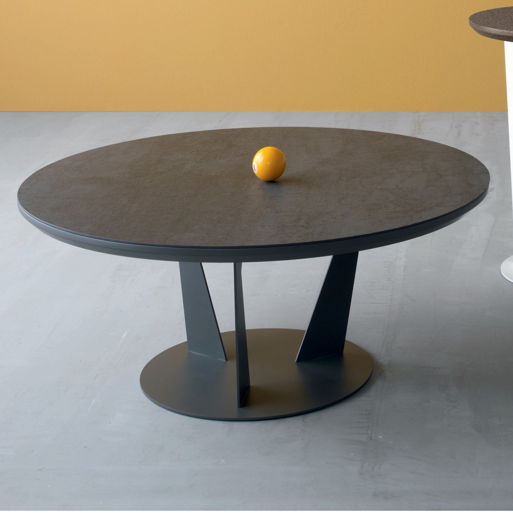 Round coffee table in inclined metal and ceramic top, 3 sizes made in Italy.