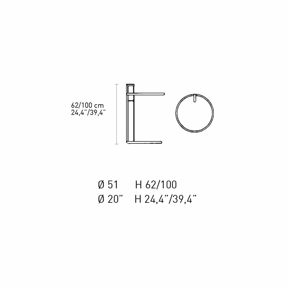 Round coffee table made in Italy with adjustable top in tempered glass (5 mm thick) and chromed steel base . A piece of furniture characterized by simplicity and design conceived and designed to conquer the center of any living area with a contemporary style thanks to its versatile personality and its extreme essentiality . The glass top gives the product elegance and character while the steel base ensures a solid and durable product thanks to the use of quality materials . The result is a sober and elegant coffee table capable of characterizing any stylistic situation with an exclusive and refined touch .