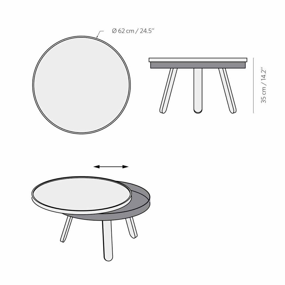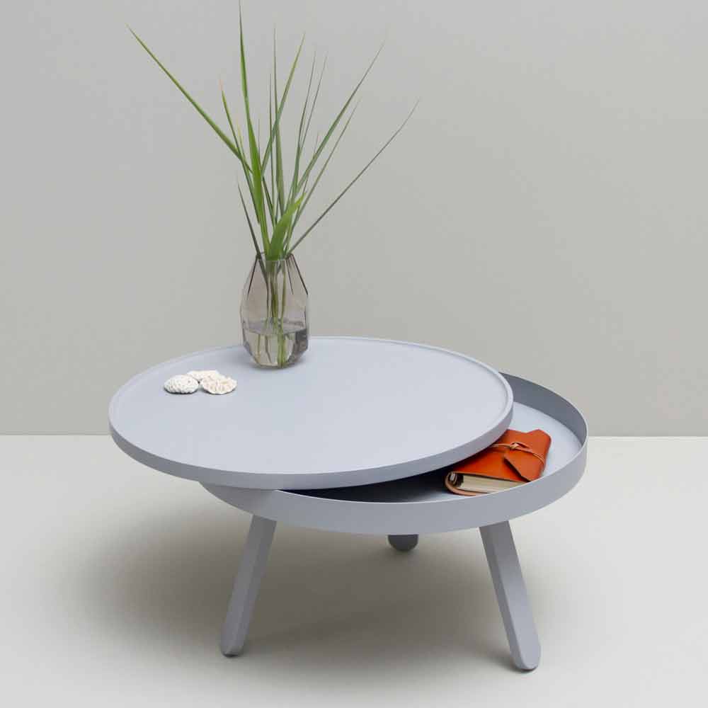 This coffee table has a solidwalnut , oak or ashwood structure that gives stability and strength to the product and a round top in matt lacquered steel that is easy to clean thanks to the use of a simple damp cloth. Its simple shapes together with the quality materials used and the work of expert craftsmen allow you to create a final product capable of combining tradition and modernity, adapting best to any environment with a contemporary style. The element that distinguishes the article is undoubtedly the top that can be opened thanks to a sliding movement which hides inside a practical container compartment ideal for organizing objects such as magazines, books and remote controls to always have them at hand. The small size and minimal design allow you to enrich even the smallest living rooms with personality and character, allowing them not to give up on furnishing with design objects with a strong visual impact. Thanks to the wide range of colors and finishes available, the table will be able to adapt to the needs of those looking for a refined product but also to those who want to have a touch of color and liveliness in their own home.