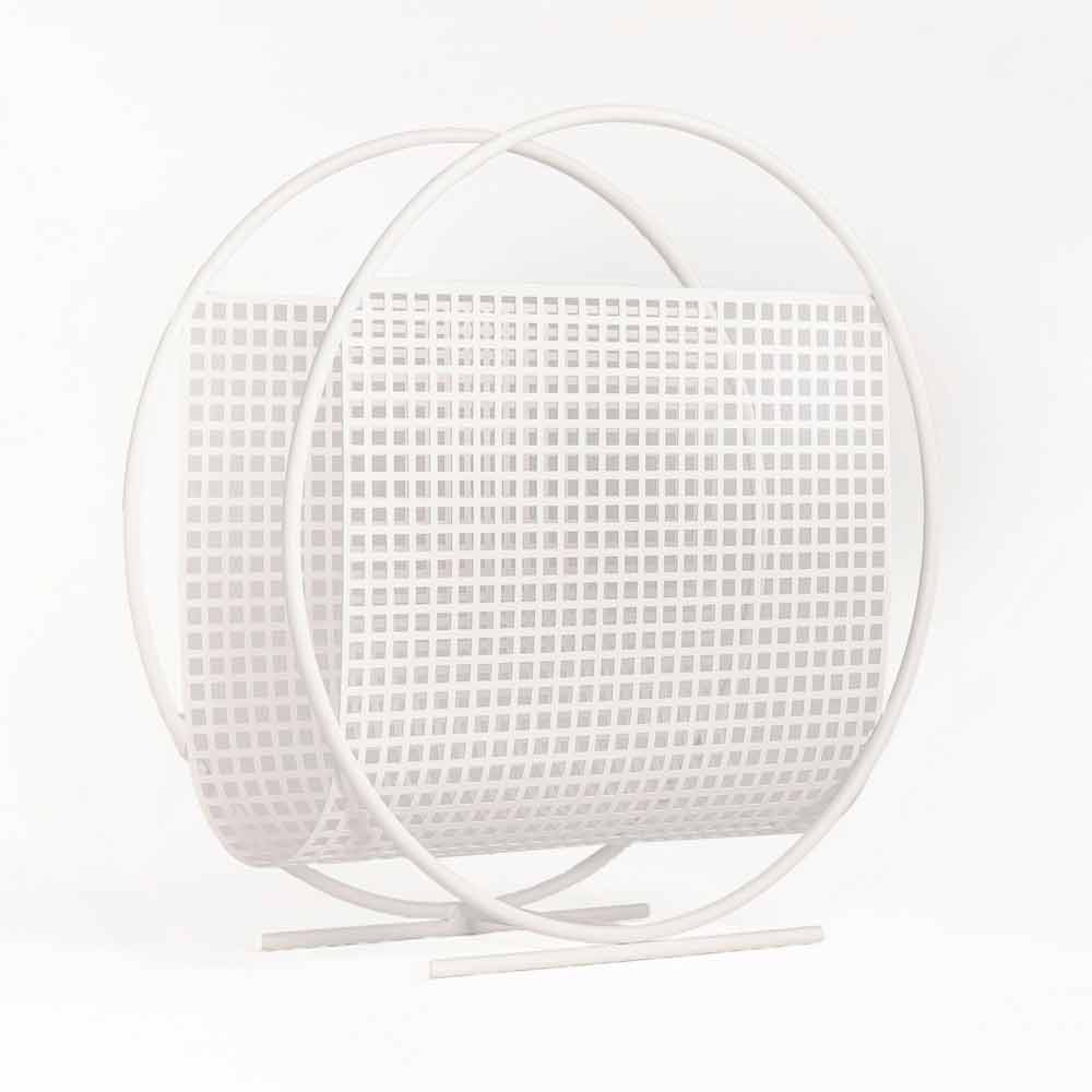 Floor magazinerack entirely made in Italy in RAL painted steel characterized by the use of different geometric shapes such as the circle, the square and the line which, combined in a single product, help to create an elegant product that does not go unnoticed. Ideal to be placed in environments with a modern and colorful taste to give character and personality to the room thanks to a simple design element.