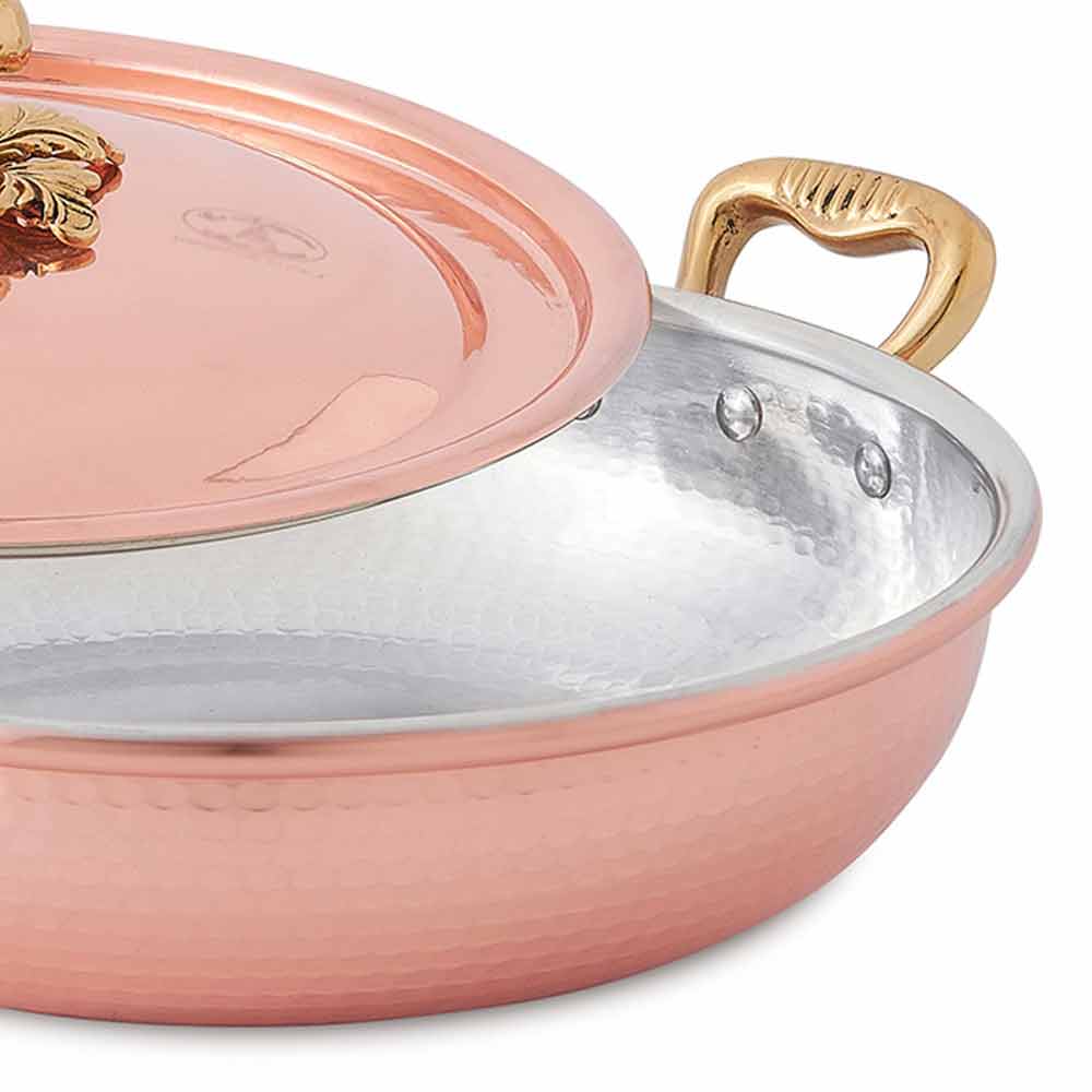Round pan in hand-hammered tinned solid copper and lid, made in Italy.