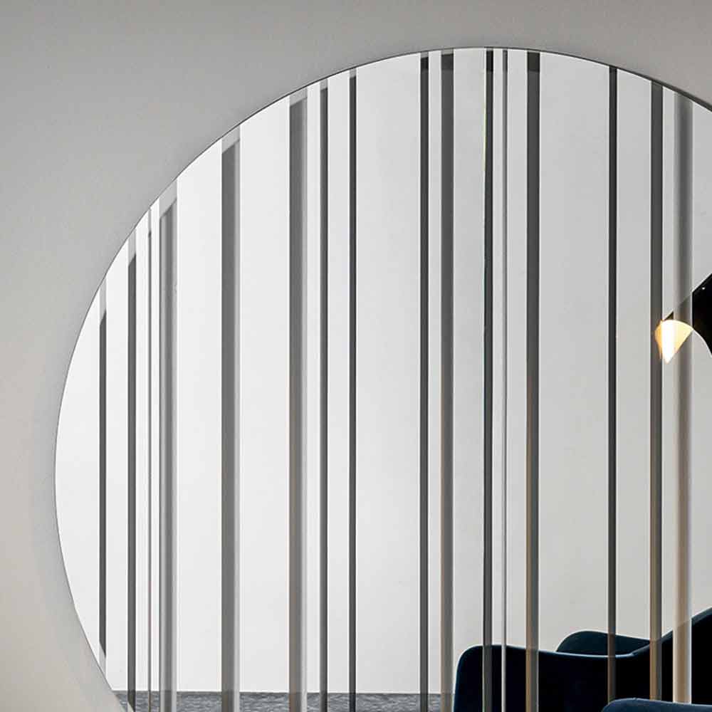 This mirror is made of two matched elements composed of glass panels where mirrored bands and transparent band are alternated.