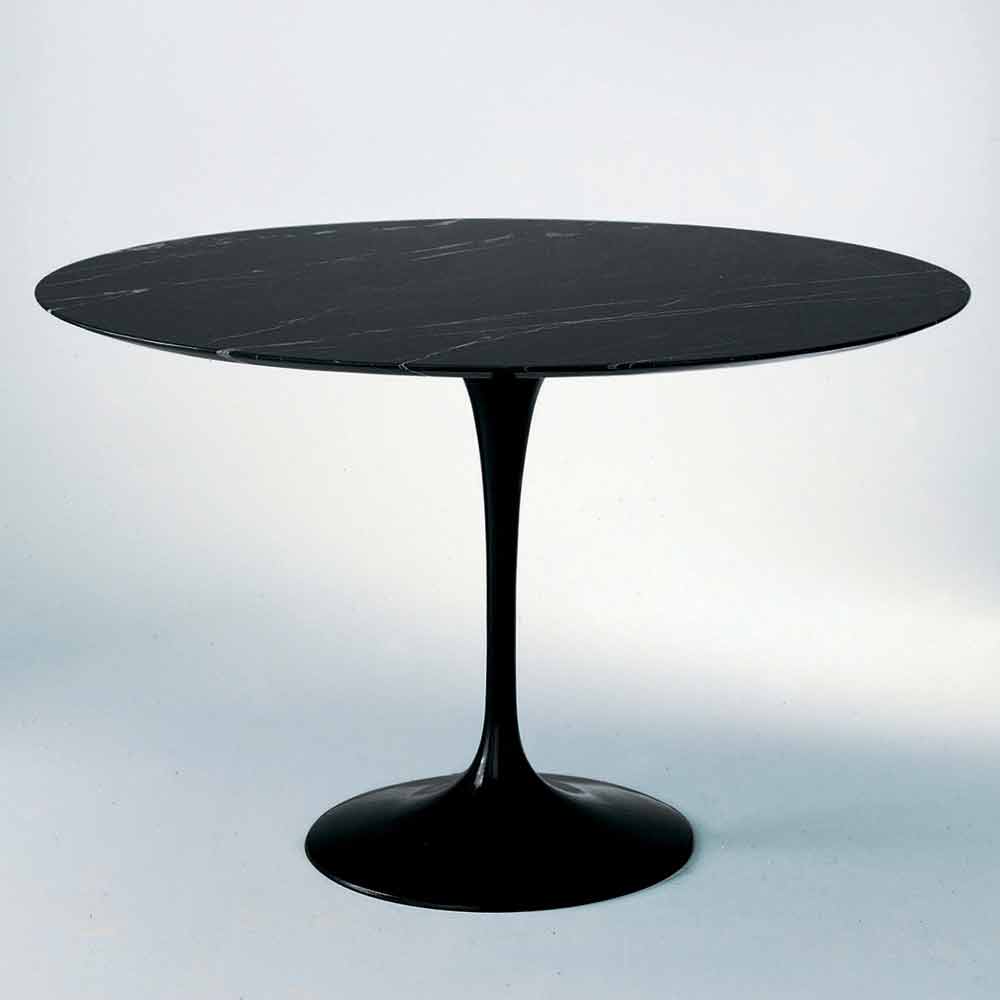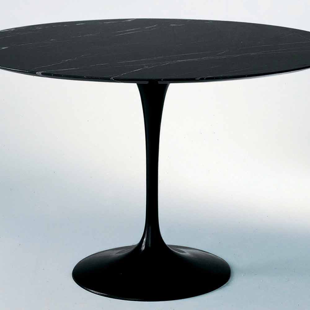 Dining table with round marble top and black lacquered cast aluminum base.Made in Italy with high quality raw materials , this piece of furniture demonstrates a strong elegant personality that is underlined and enriched by the wonderful marble top, a high-class and refined material which creates a perfect contrast with the modernity of lacquered aluminum. giving life to a stylistic solution with a strong visual impact . Its simple and linear shapes also make it particularly versatile, therefore ideal for completing in an exclusive way any dining room or kitchen characterized by a contemporary taste, bringing with it an avant-garde design and a sense of refinement .