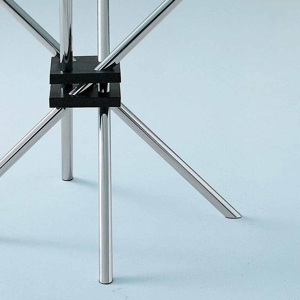 Dining table with round top in tempered glass (12 mm thick), base in chromed steel and joint in black painted cast aluminum. Simplicity and design are the peculiar characteristics of this modern furnishing accessory entirely made in Italy, conceived and designed to conquer the center of any dining room or kitchen with a contemporary style thanks to its versatile personality and its extreme essentiality . The glass top gives the product elegance and character while the steel base ensures a solid and durable product thanks to the use of quality materials . The result is a sober and elegant dining table capable of characterizing any stylistic situation with an exclusive and refined touch .