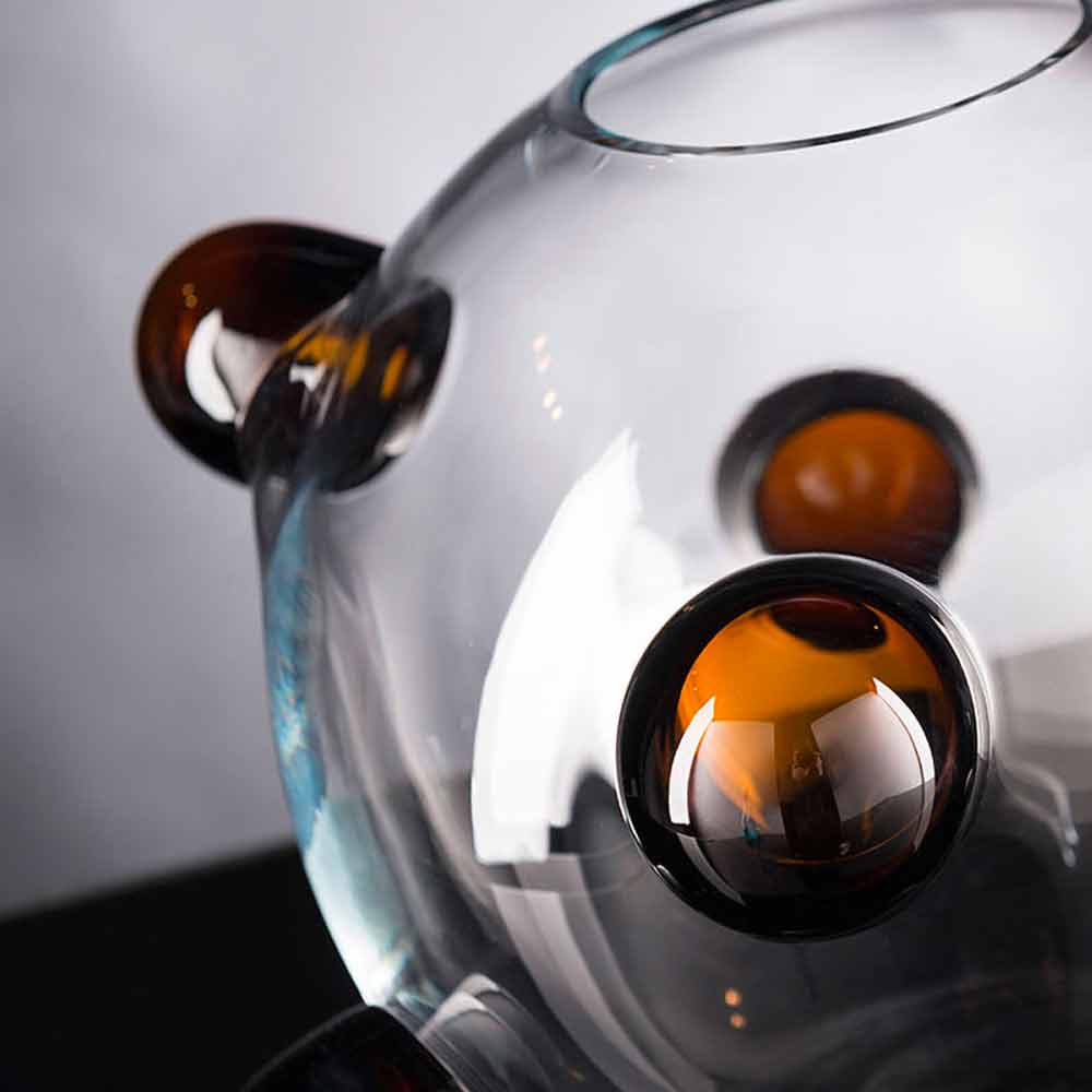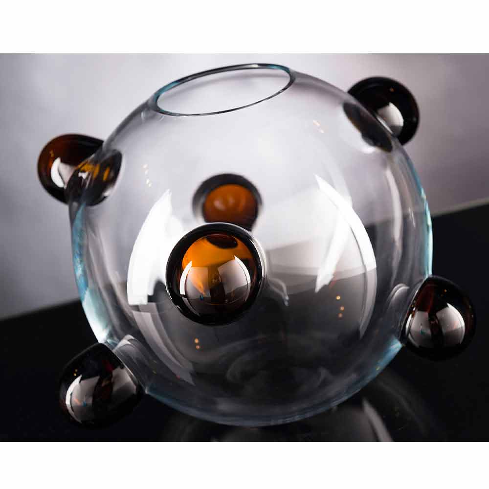 Decorative vase in Murano blown glass with colored details Made in Italy.