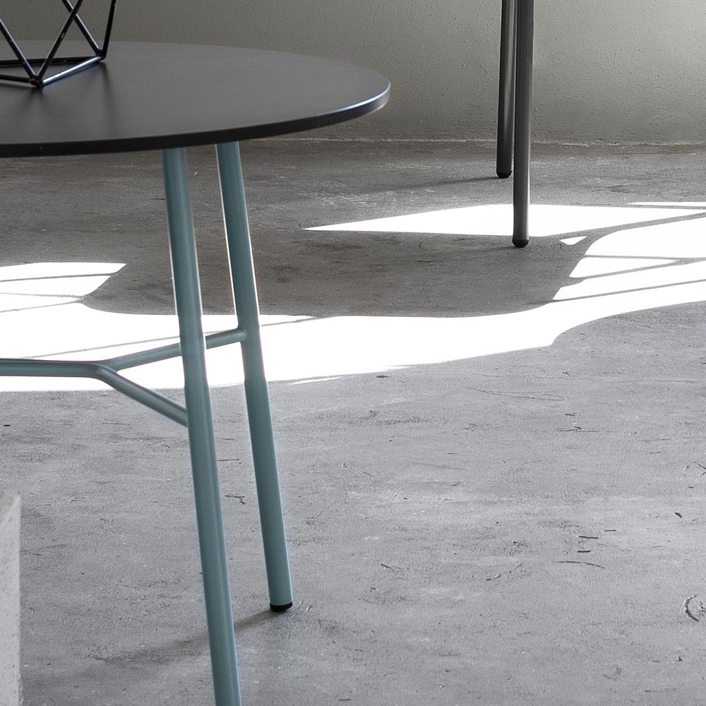 Round outdoor coffee table in HPL and painted metal Made in Italy.