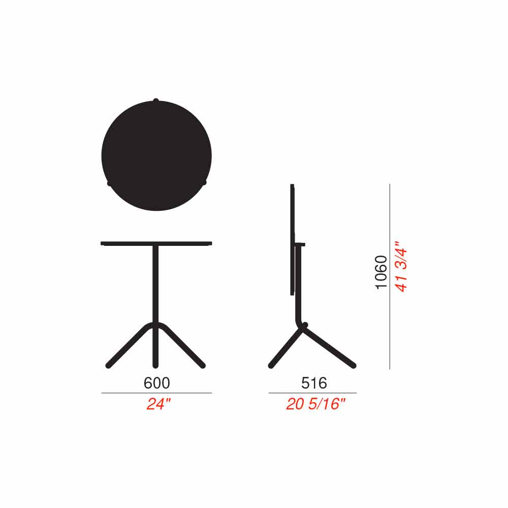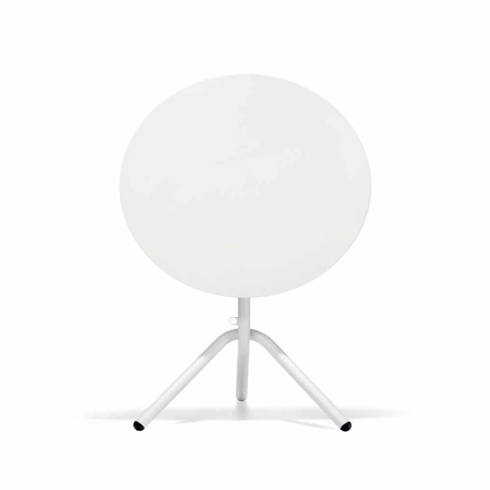 Round outdoor table in metal and stackable and foldable sheet metal Made in Italy.