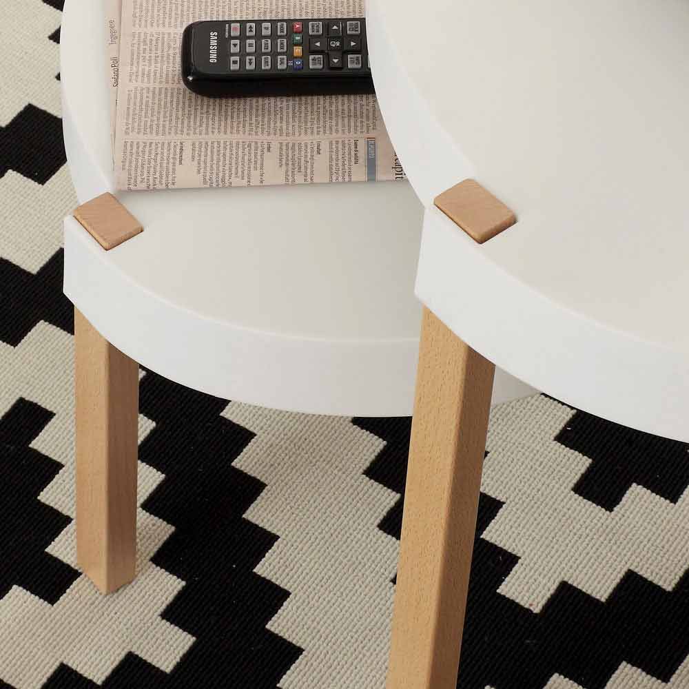 Modern design coffee table Pineto, with white polypropylene table top and beechwood legs.