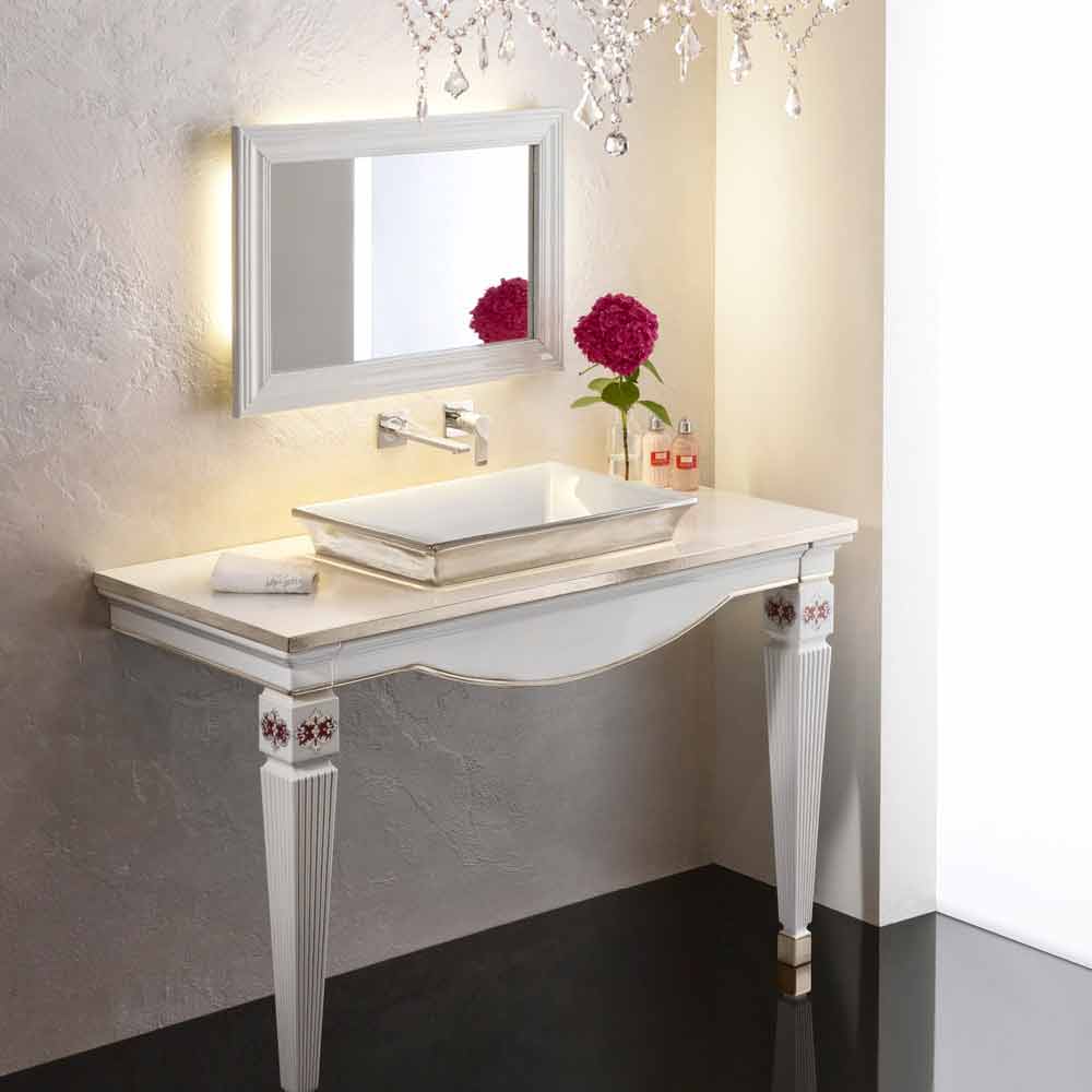 Semirecessed bathroom sink handmade in Italy in fire clay with shiny white inside and refined in platinum on the outside.