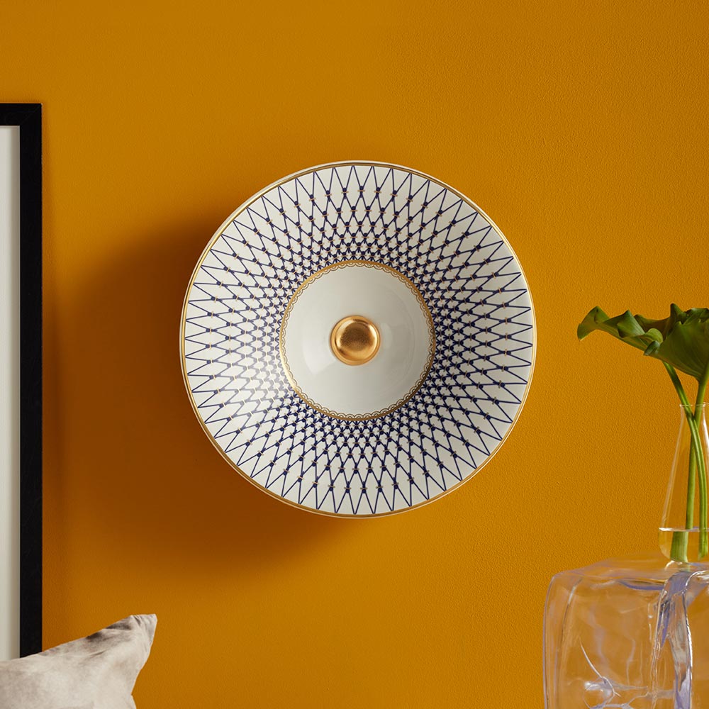 - internal blue capitonnƩe relief decoration on white enamel, external white enamel