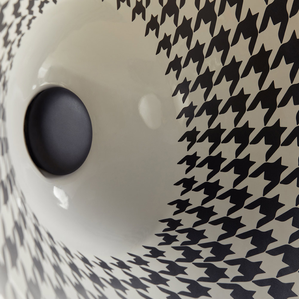 - internal houndstooth relief decoration on white enamel, external white enamel