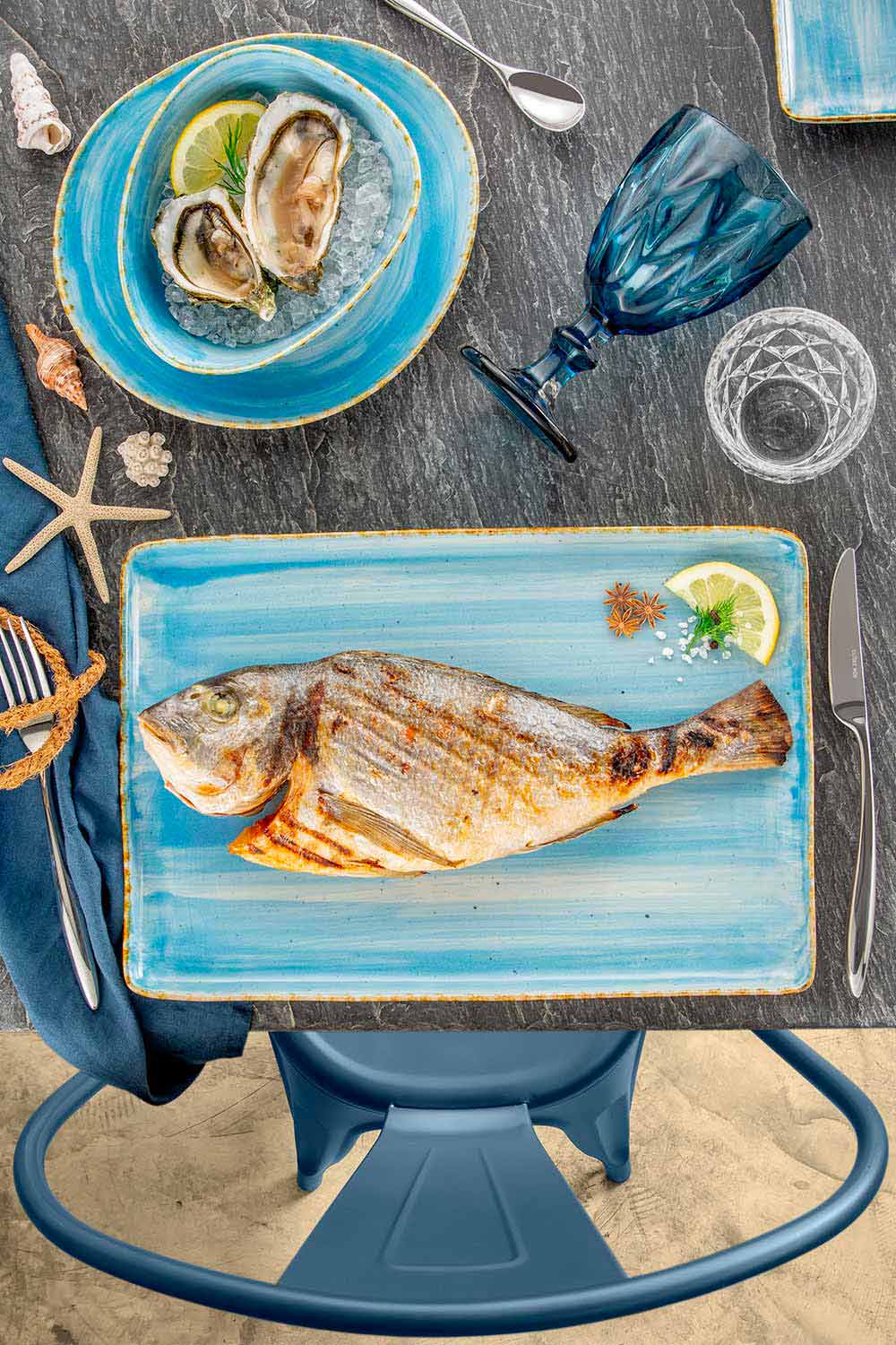 anise blue : the color of the ocean and the sea breeze that blends with the immensity of the sky, for a mise en place that wants to surprise and highlight tasty ideas in the kitchen.