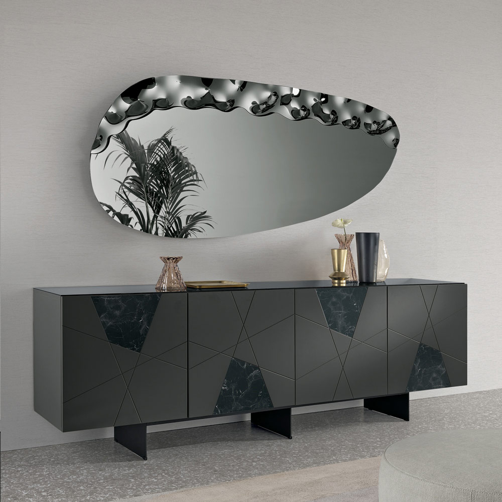 Shaped Mirror with Mottled Glass Insert Made in Italy - Amata