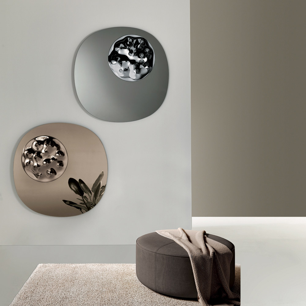 The mirror can be installed in four different positions thanks to the rear frame, allowing you to orient the decorative detail to suit the style of the room. Available in elegant bronze and smoked finishes, it is the perfect furnishing accessory for modern and sophisticated spaces.