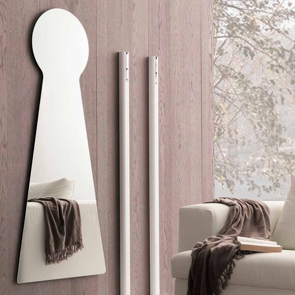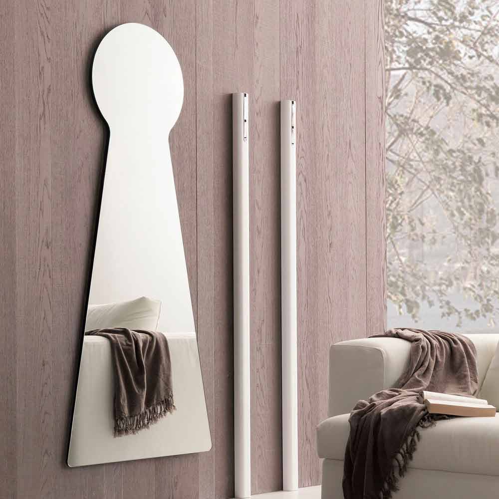 Original shaped wall mirror made in Italy with melamine rear mirror panel. This piece of furniture has an extremely creative and avant-garde design and adapts flawlessly to any modern furnishing situation within which it manages to characterize the environment, making it brighter and more spacious. Its imposing dimensions make it a particularly suitable choice for large rooms with large walls to be filled with a touch of personality and unique style. The mirror represents an eclectic and particularly versatile accessory, capable of transforming and improving the perception of any environment. It represents a fundamental element that manages to optically enlarge the spaces while at the same time acting as an important light point.