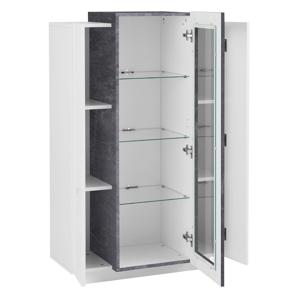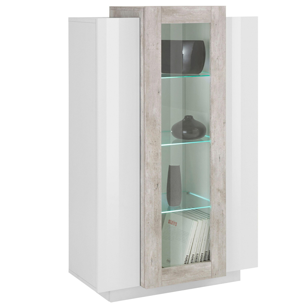 Showcase with 3 doors in glossy white wood and melamine 3 finishes with or without led, made in Italy.