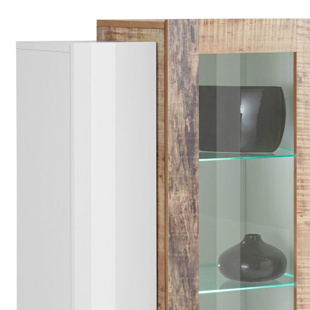 Showcase with 3 doors (2 in wood with 2 internal shelves each in wood of L 18.4 x D 29.5 x H 111.8 cm and 1 in glass with 3 internal glass shelves of L 36.8 x D 29, 5 x H 11.8 cm)