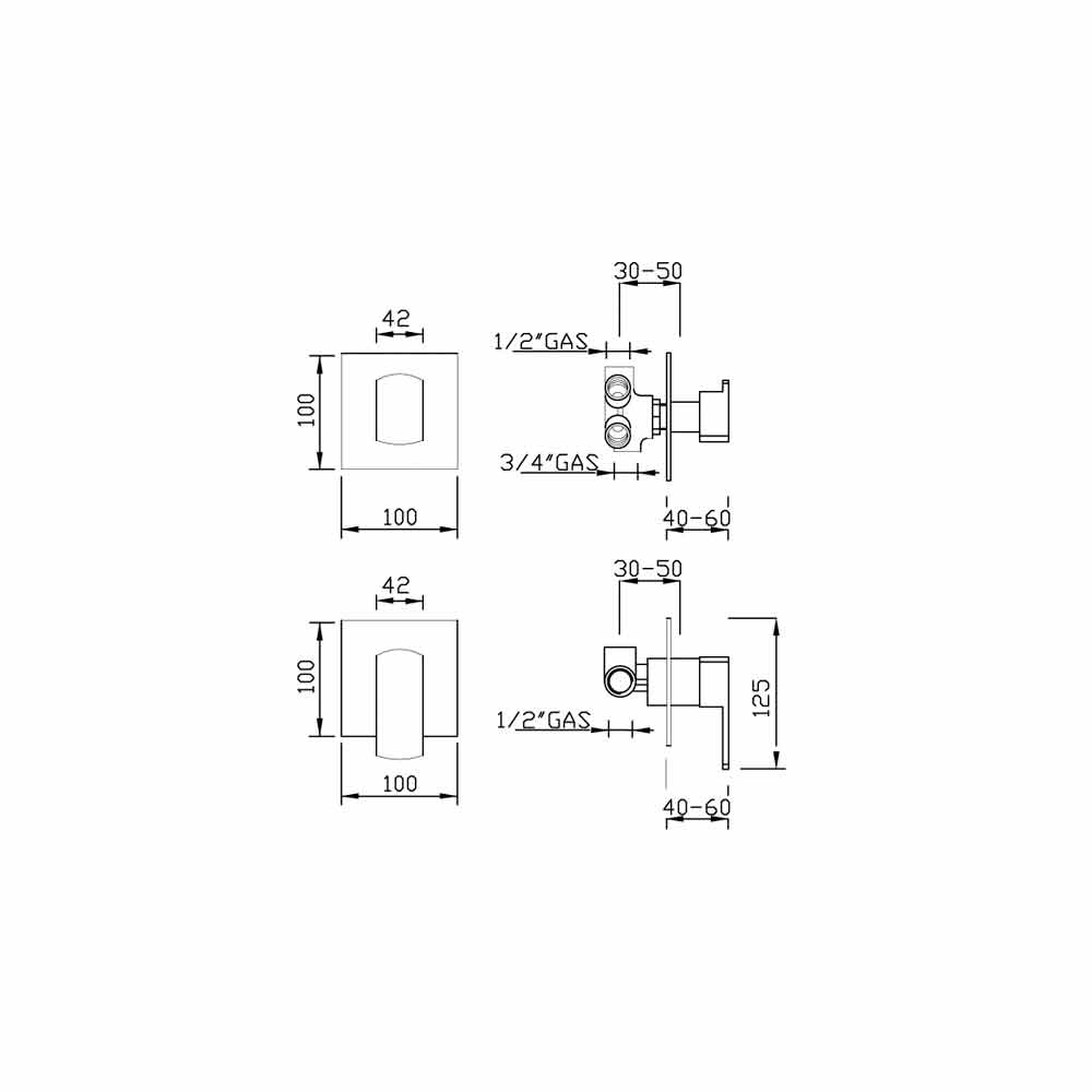 with 5-way diverter complete with built-in part and external parts.