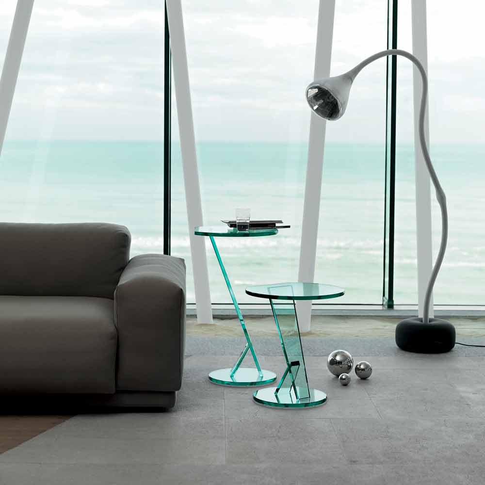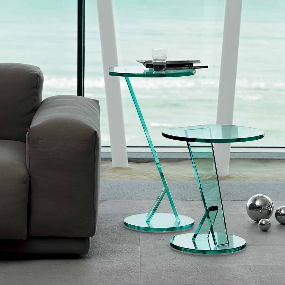 Sofa side table in extra-clear glass of 2 heights,high quality made in Italy.