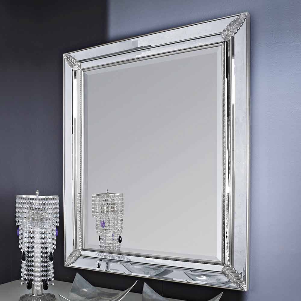 Handmade wall mirror in gold/silver wood, produced in Italy Samuele