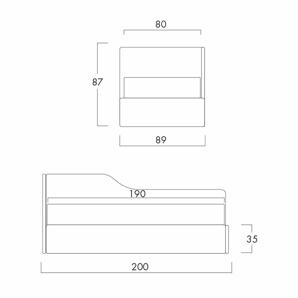 - 80x190 cm (finished measures L 91 x D 200 x H 87 cm)