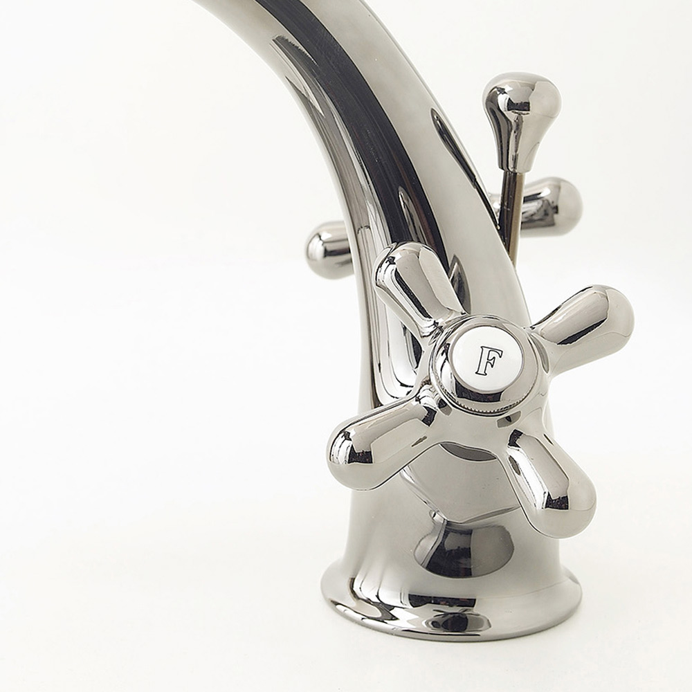 Single hole basin tap with classic style brass drain, high quality made in Italy.