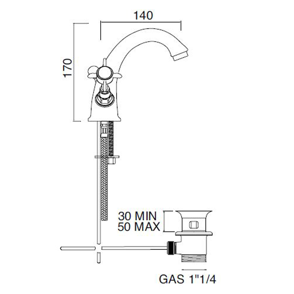 Technical features:- Minimum pressure for good operation: 0.5 bar.