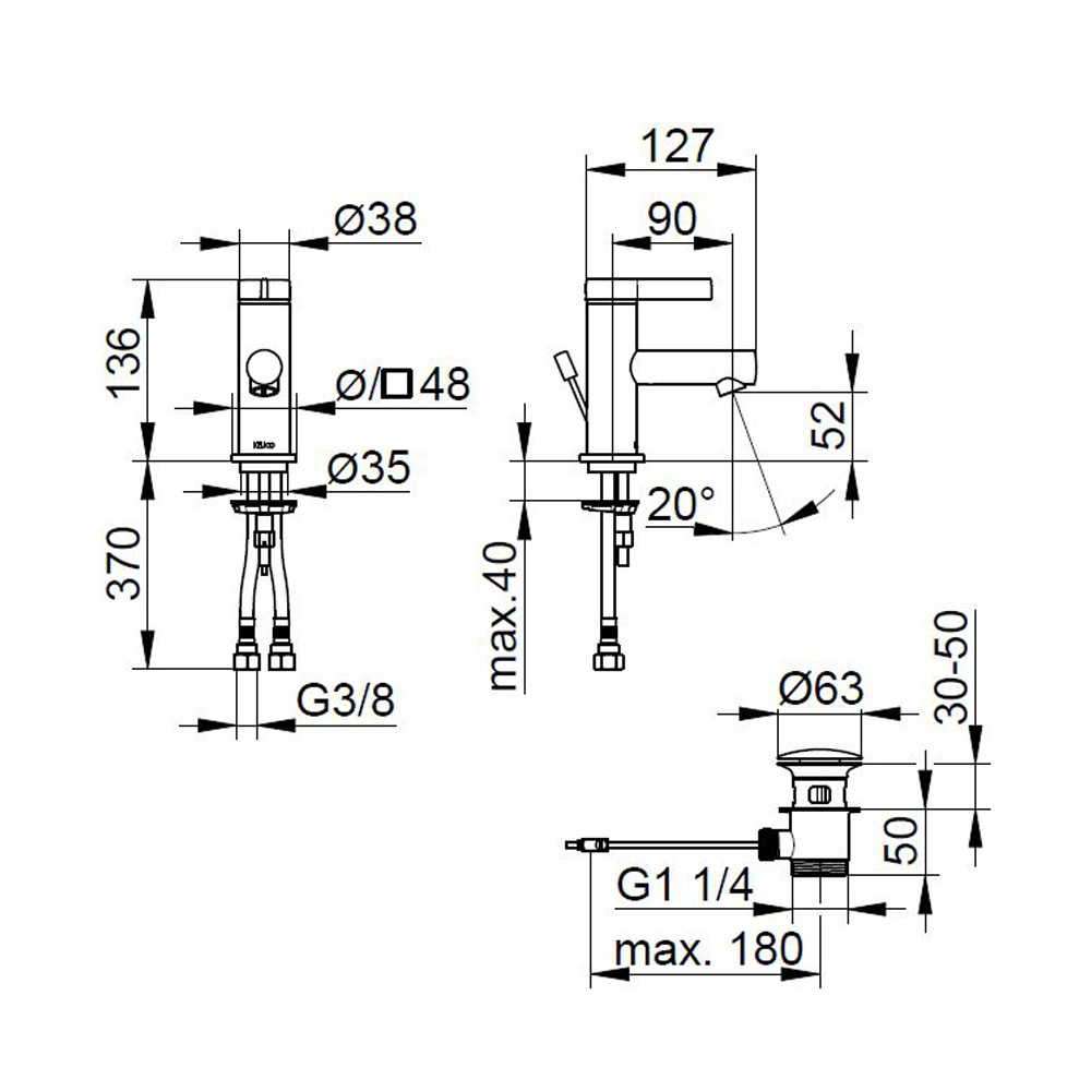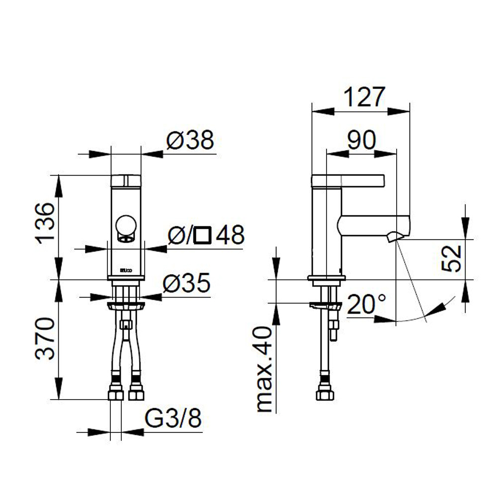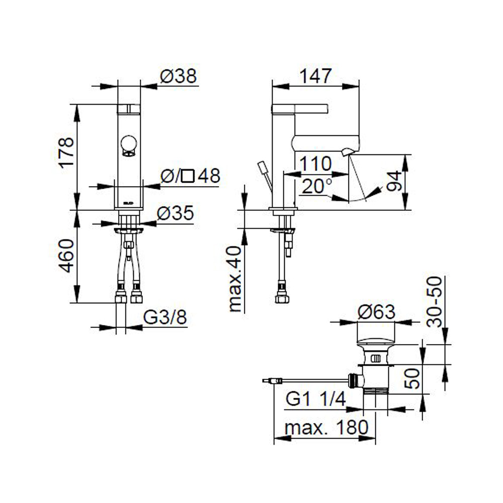 aerator M 20x1, pressure pipes 570 mm, G 3/8 inch;