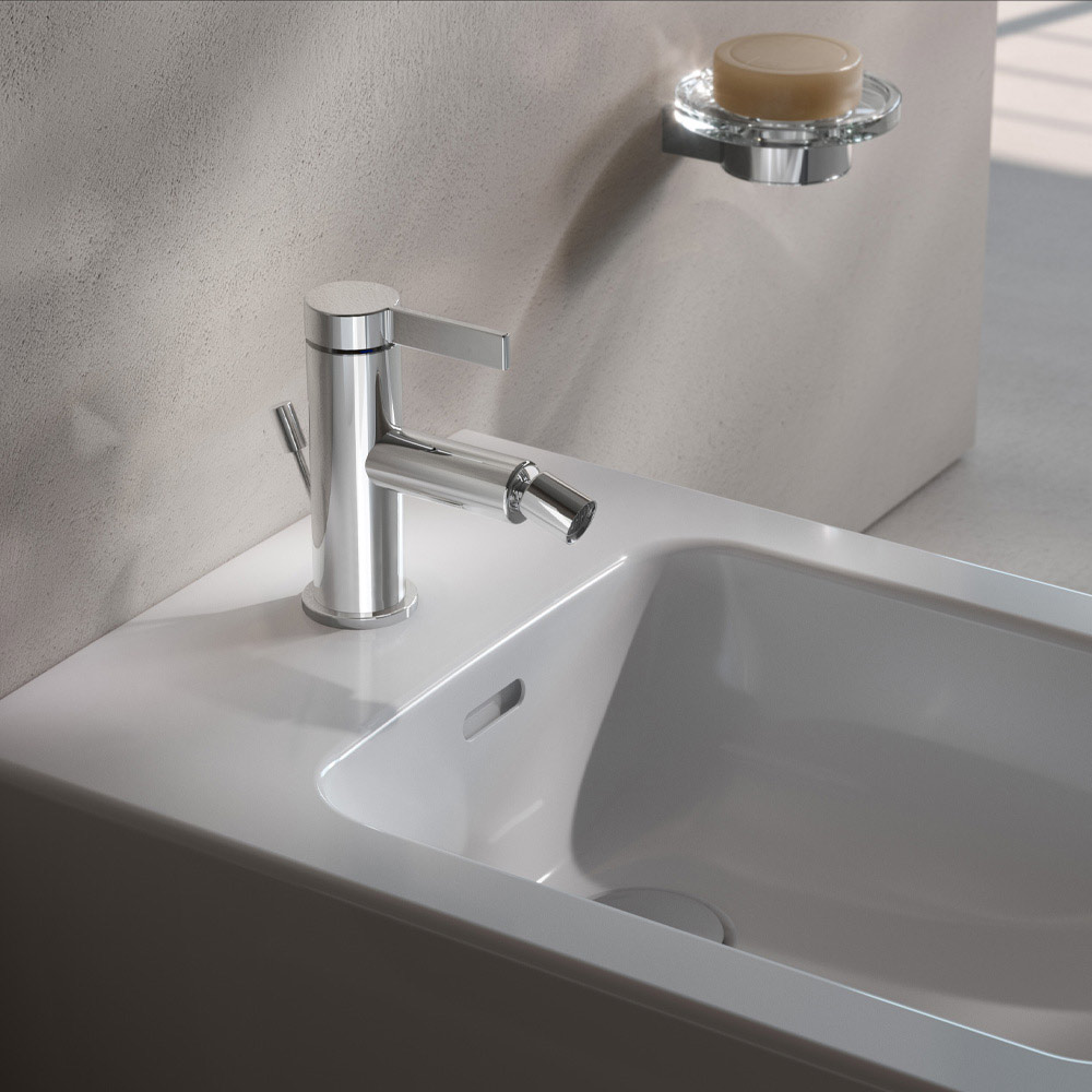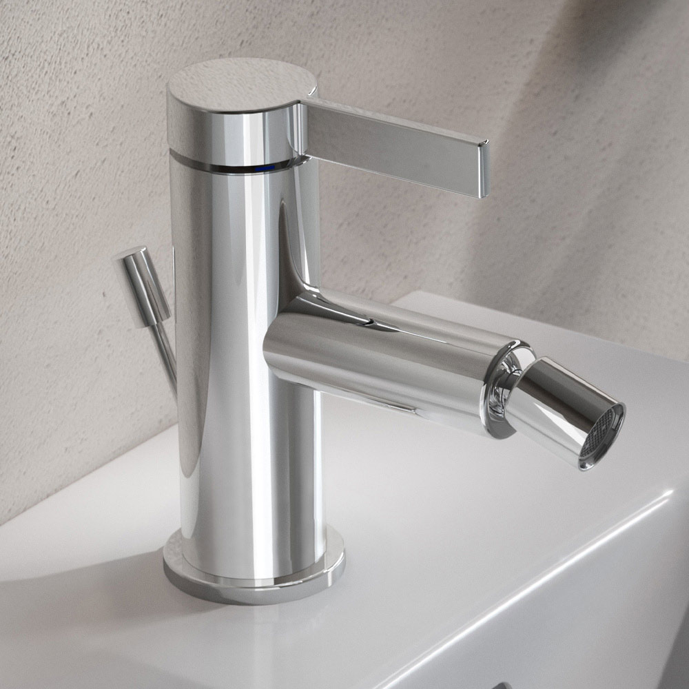 This single-lever bidet mixer has a design with perfect synchrony between the handle and the spout. In particular, its classic shape is given by a round and straight mouth combined with a rectangular lever. Made of chromed brass , the resulting design is clean and minimalist , with captivating aesthetics and functionality with high quality materials.