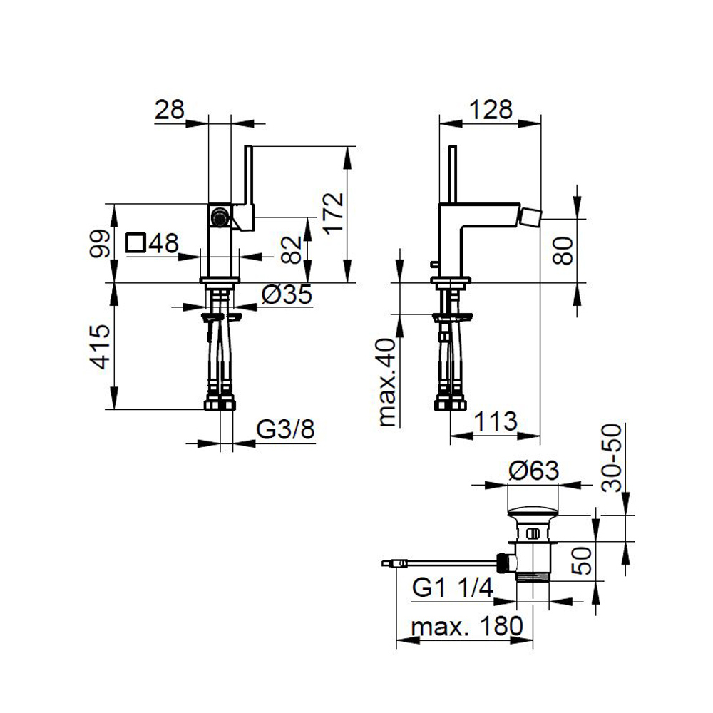 3-Hole Bidet Battery with Classic Handmade Brass Drain - Fioretta