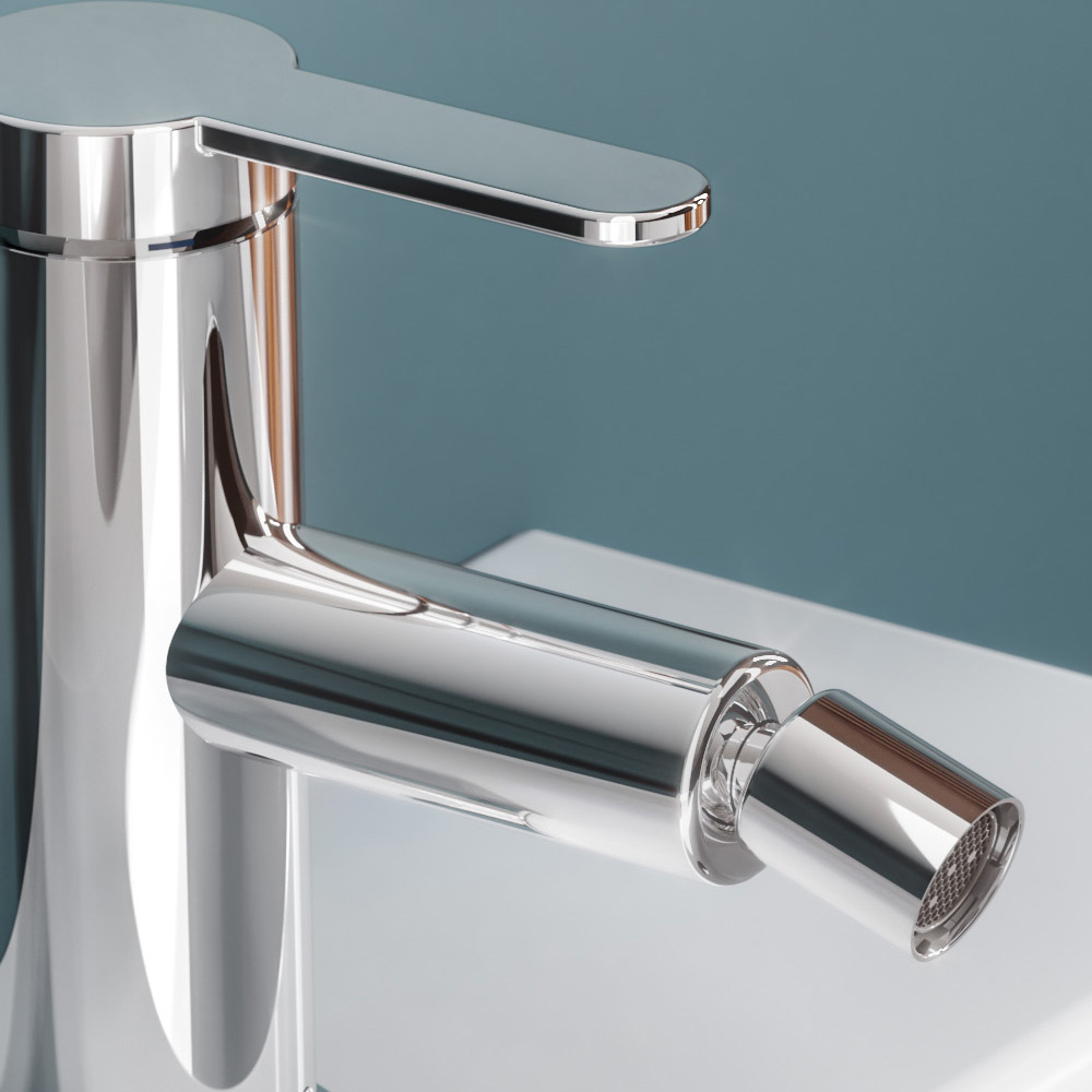 This single-lever bidet mixer has a design with perfect synchrony between the handle and the spout. In particular, its shape combines round and angular lines in a sensual harmony. Made of chromed brass , the resulting design is clean and minimalist , with captivating aesthetics and functionality with high quality materials.