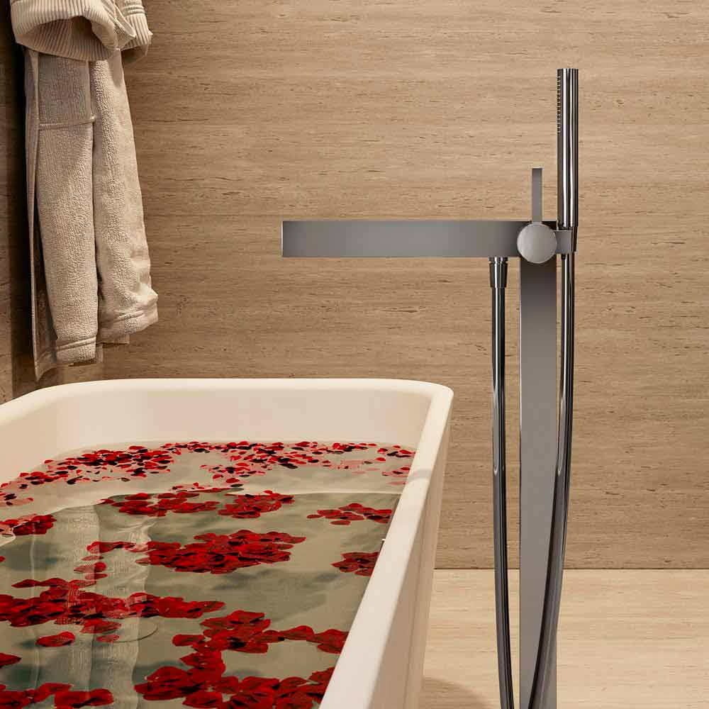 This wonderful and elegant line of bathroom taps combines round and square shapes to create unique and luxurious environments. Its design is exclusive and proves capable of revolutionizing the furnishing of any bathroom with a modern taste in an elegant and refined way. It also features a practical and functional conversion from a spout to a hand shower integrated in the taps so that you can quickly and easily switch from one mode to another in a single operation.