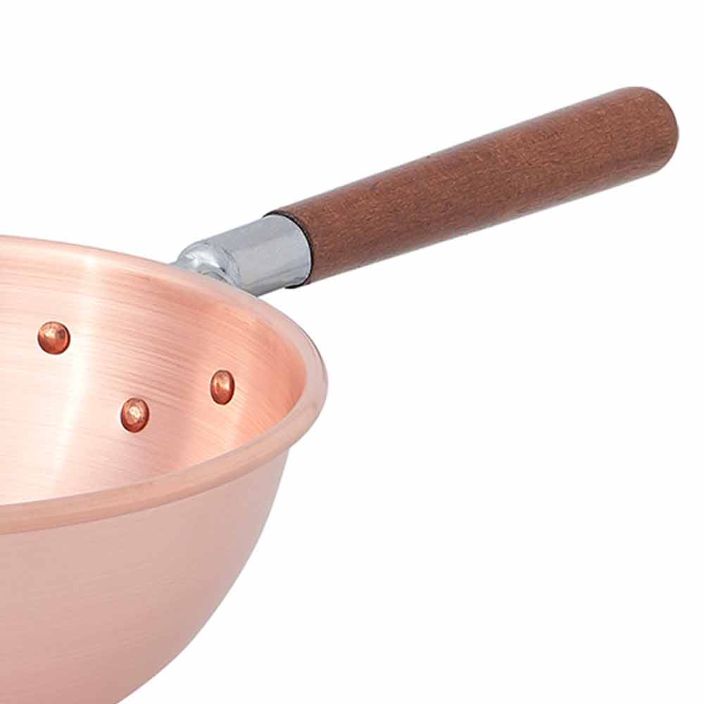 Bastardella in solid frosted copper and wooden handle 26 cm made in Italy quality.