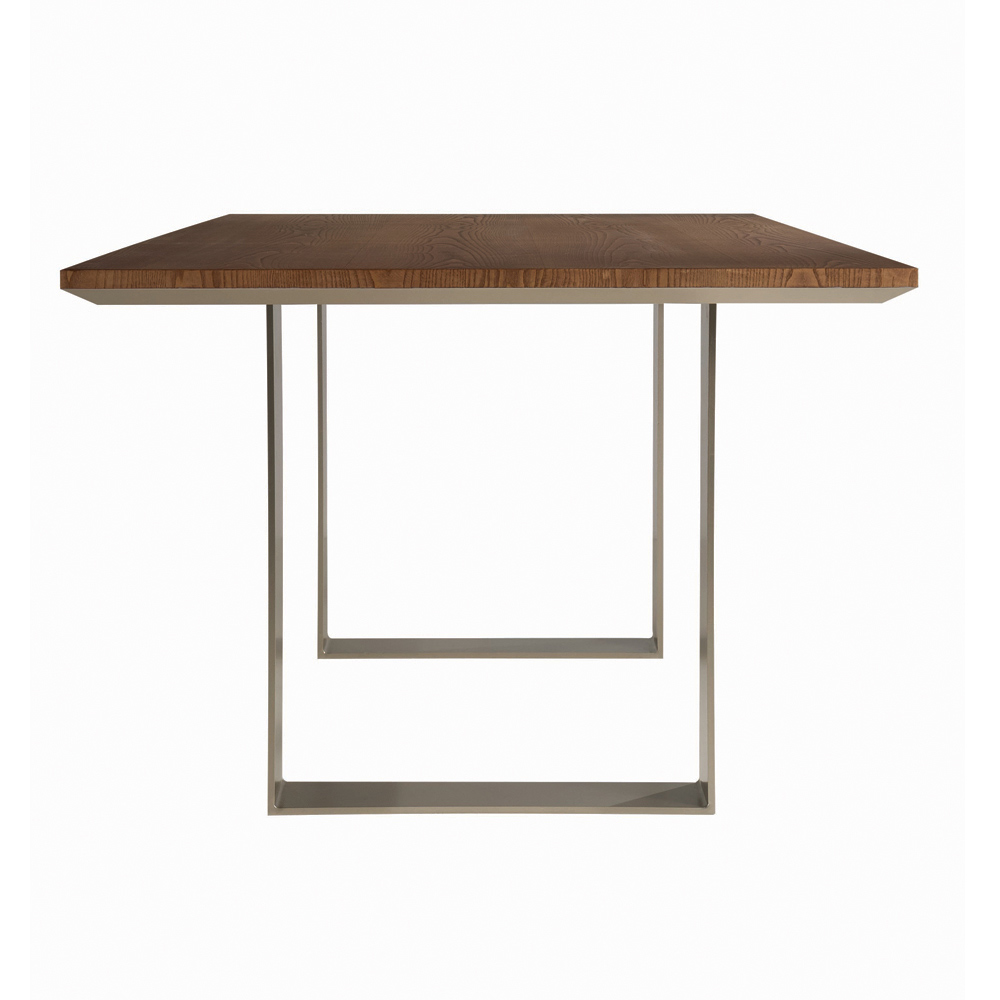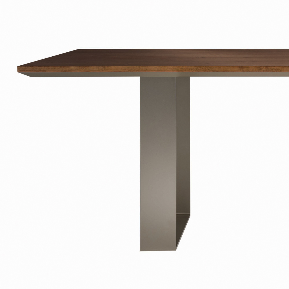 Dining table made in Italy consisting of two ironlegs and solid blockboard wood top with MDF support. A complement with a minimal but incredibly modern style, designed to furnish any living space in an essential way. Its aesthetic is particularly simple, marked by minimal shapes, a rectangular top resting on two legs with a particular workmanship that transmit a dynamic and elegant visual effect.