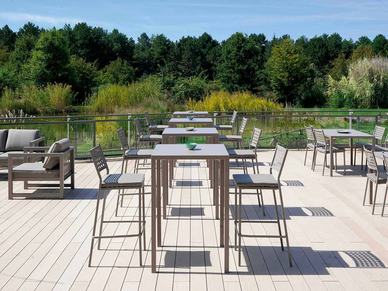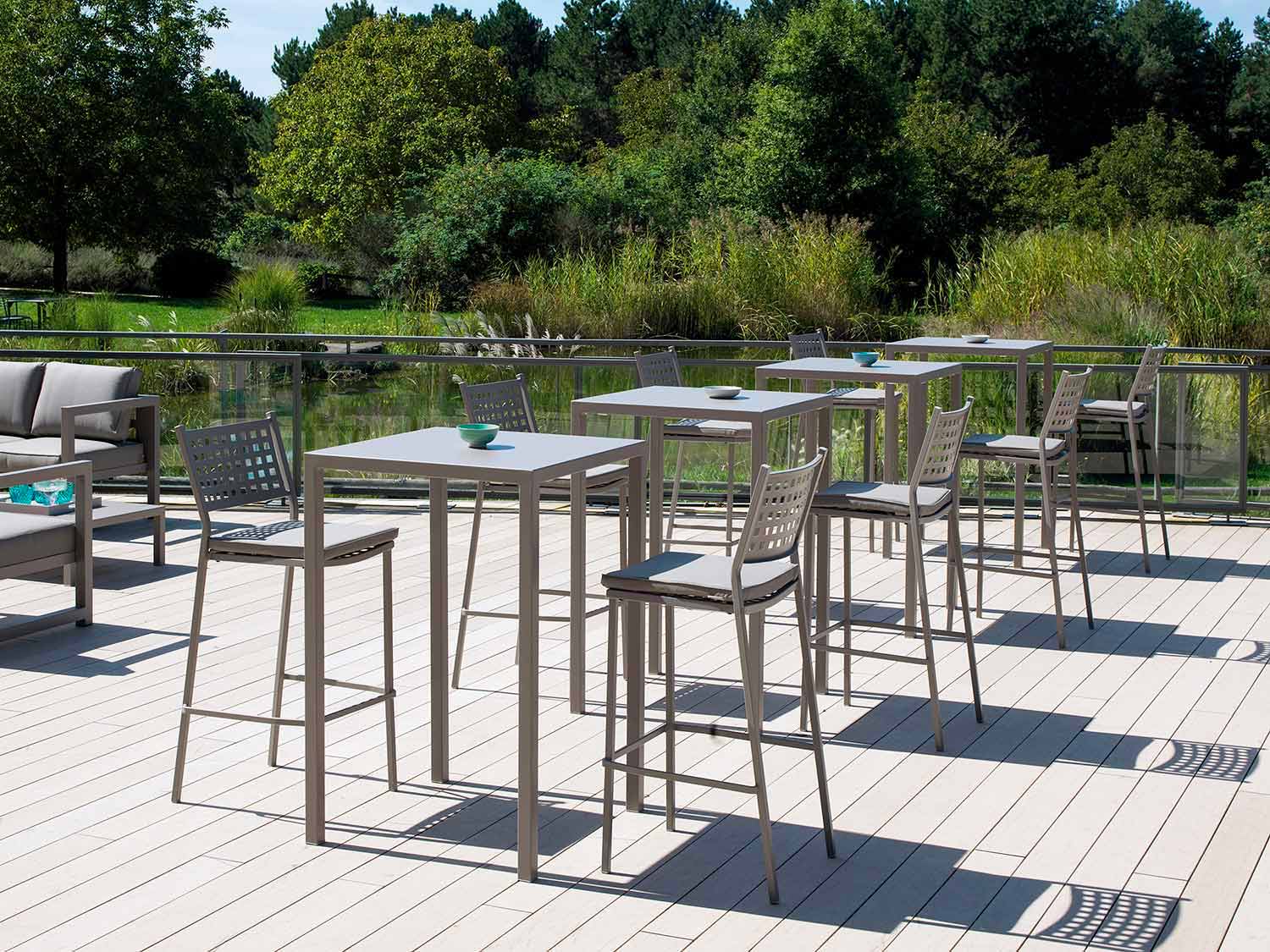 Bar table for outdoor in self-leveling powder coated metal, Made in Italy.