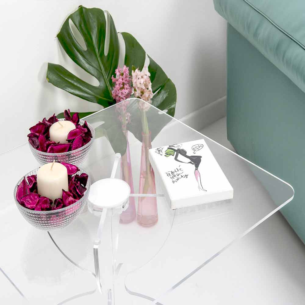 The square small table LAMON has a northern European tone. The transparent, laser-moulded plexiglass base recalls the celtic style and gives an exotic touch of elegance to the domestic space. Both the base and the surface are in acrylic crystal PMMA 100% from virgin polymer. The physical-technical features of the plexiglass (shock-proof, non deformable, unalterable, thermal-insulating) make the small table fit in both the indoor and outdoor spaces.
